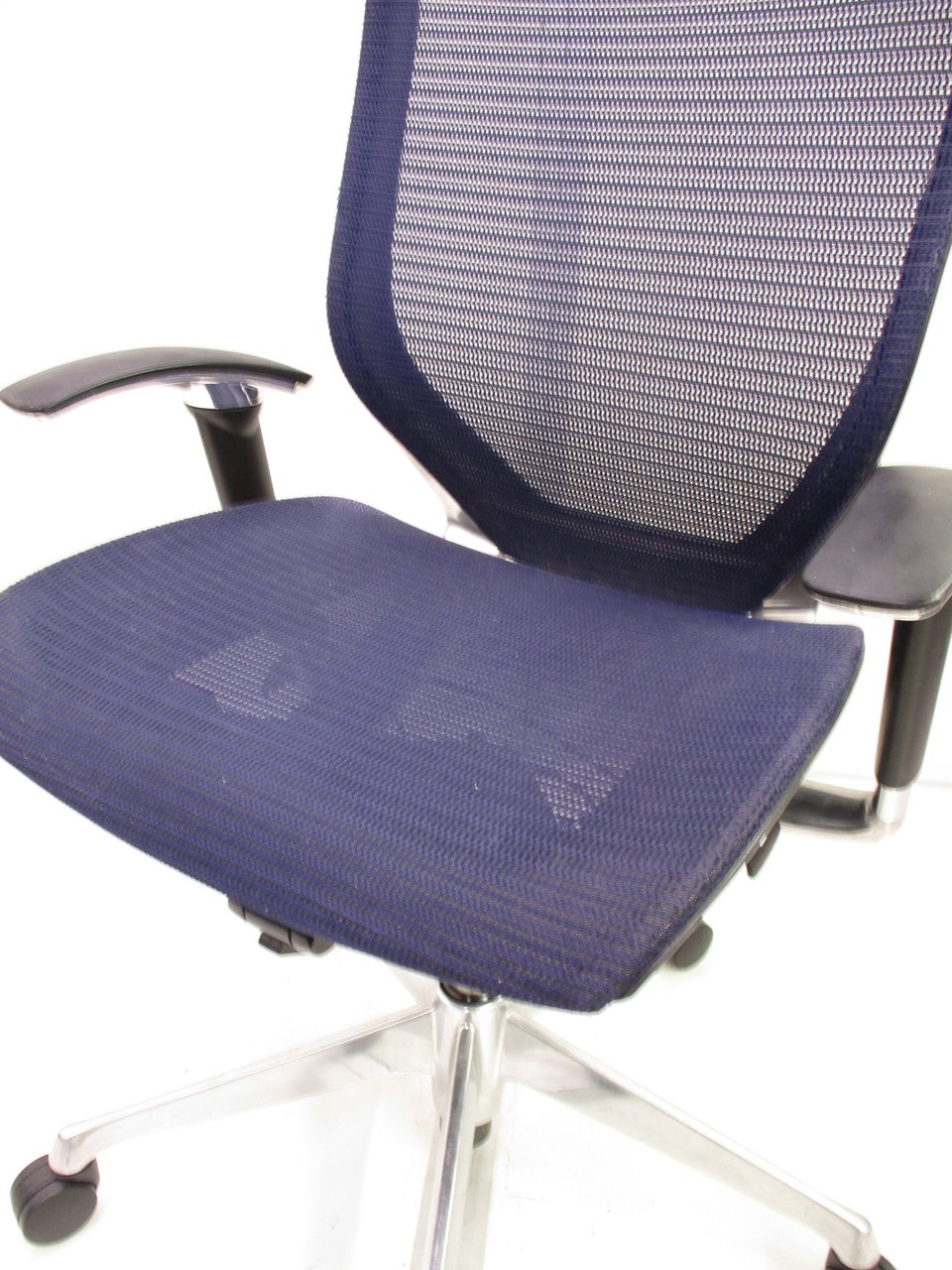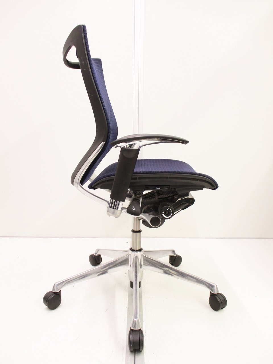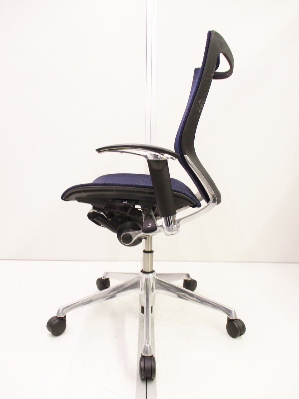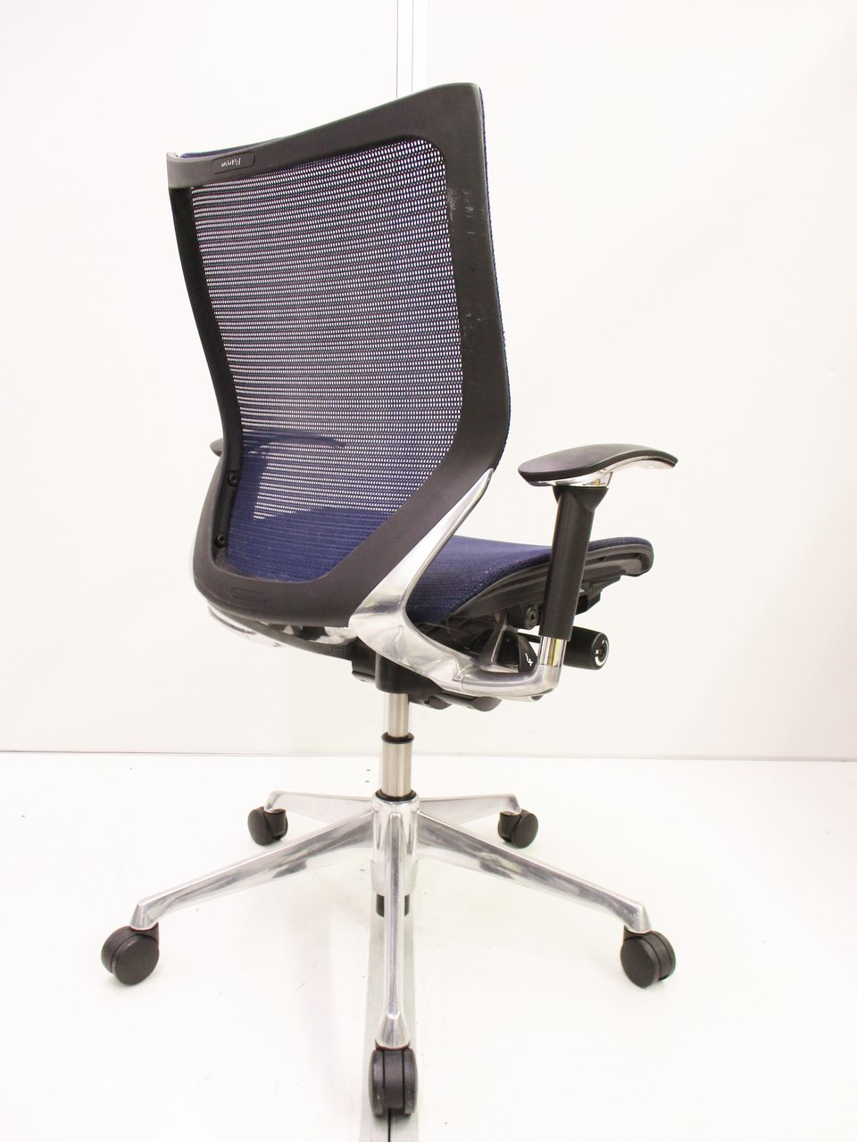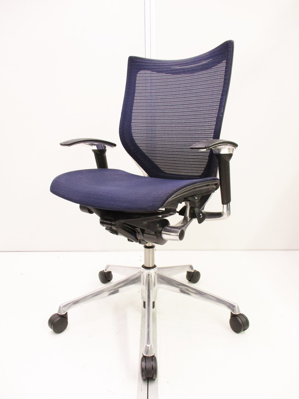 【座面が大人気!国産メッシュチェアの代表格!】■オカムラ(okamura)製 バロン(Baron)チェア ローバック 肘付き ■背面メッシュ ■固定肘 ■色:ダークブルー ■ハンガー付き