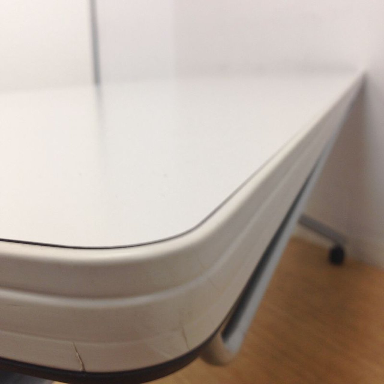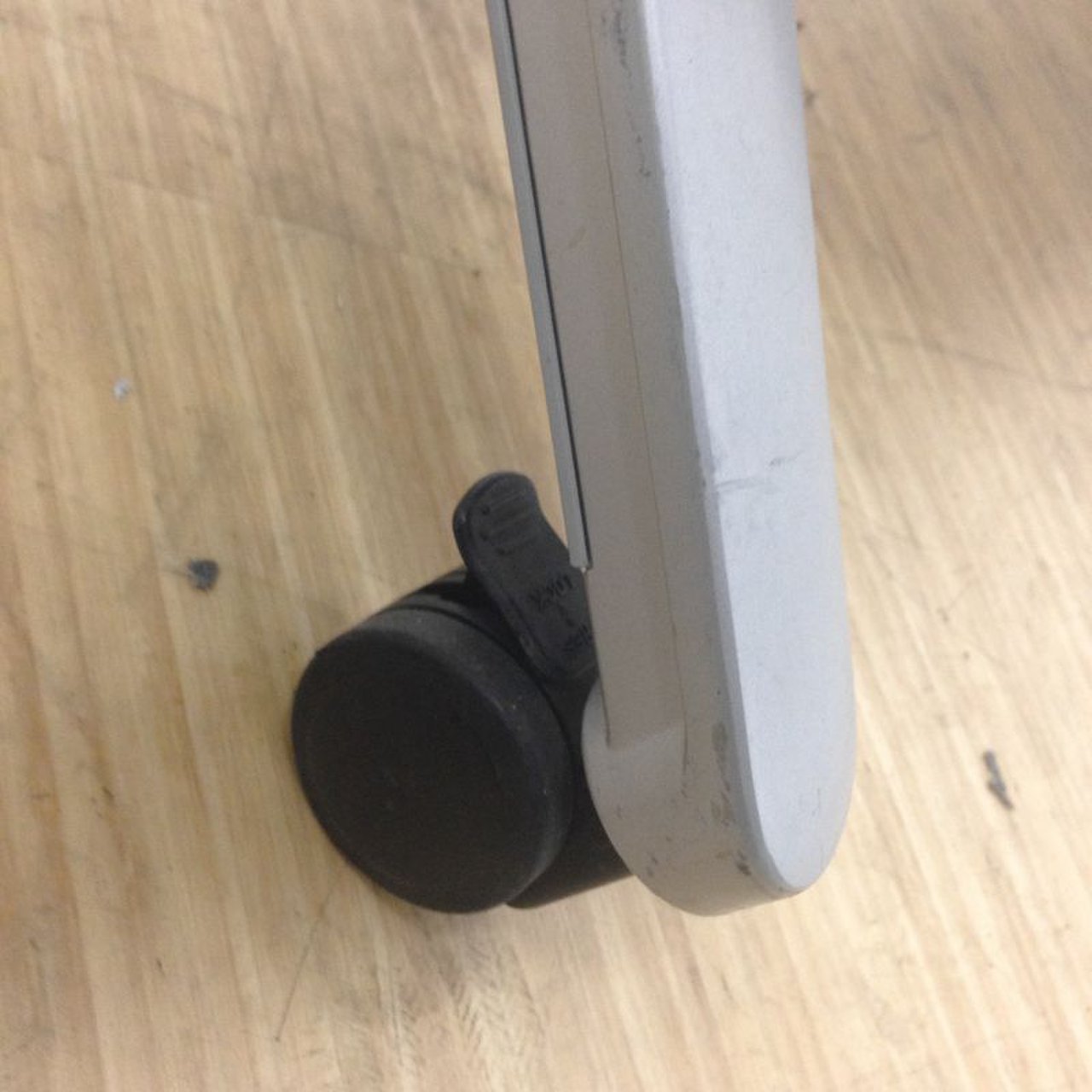 - 一部不具合あり天板歪み、アジャスター無し、キャスター使用不可ようなそのテーブルの本来の効用を果たすための機能以外の一部が使用不可な状態。(例、キャスターロッ ク機能使用不可、棚板無し等がある。)