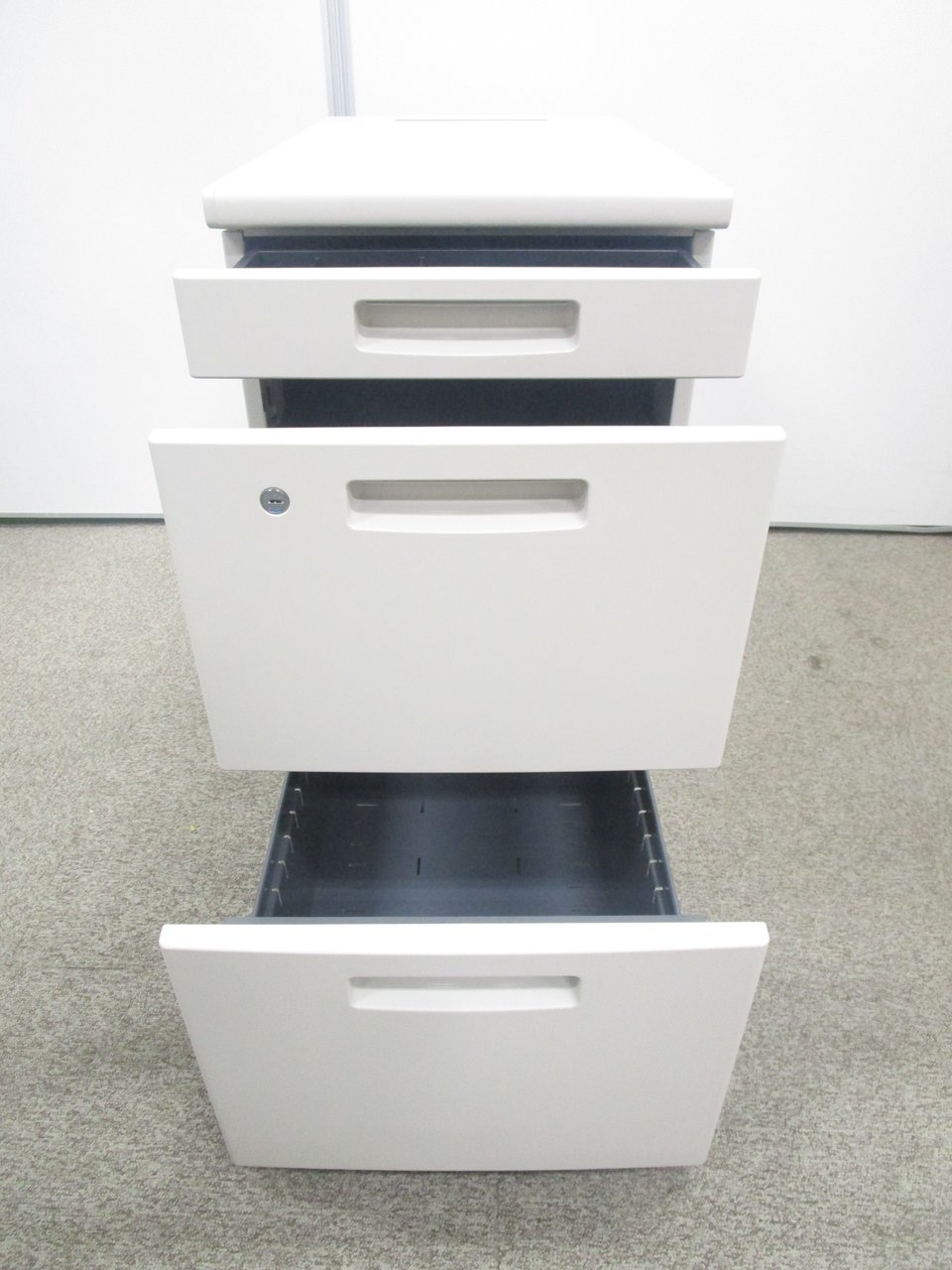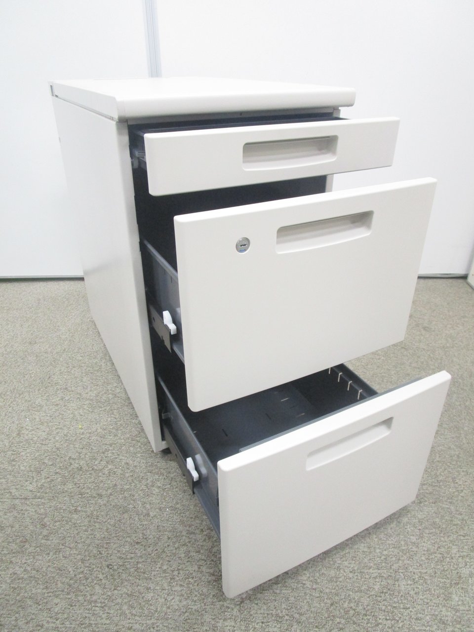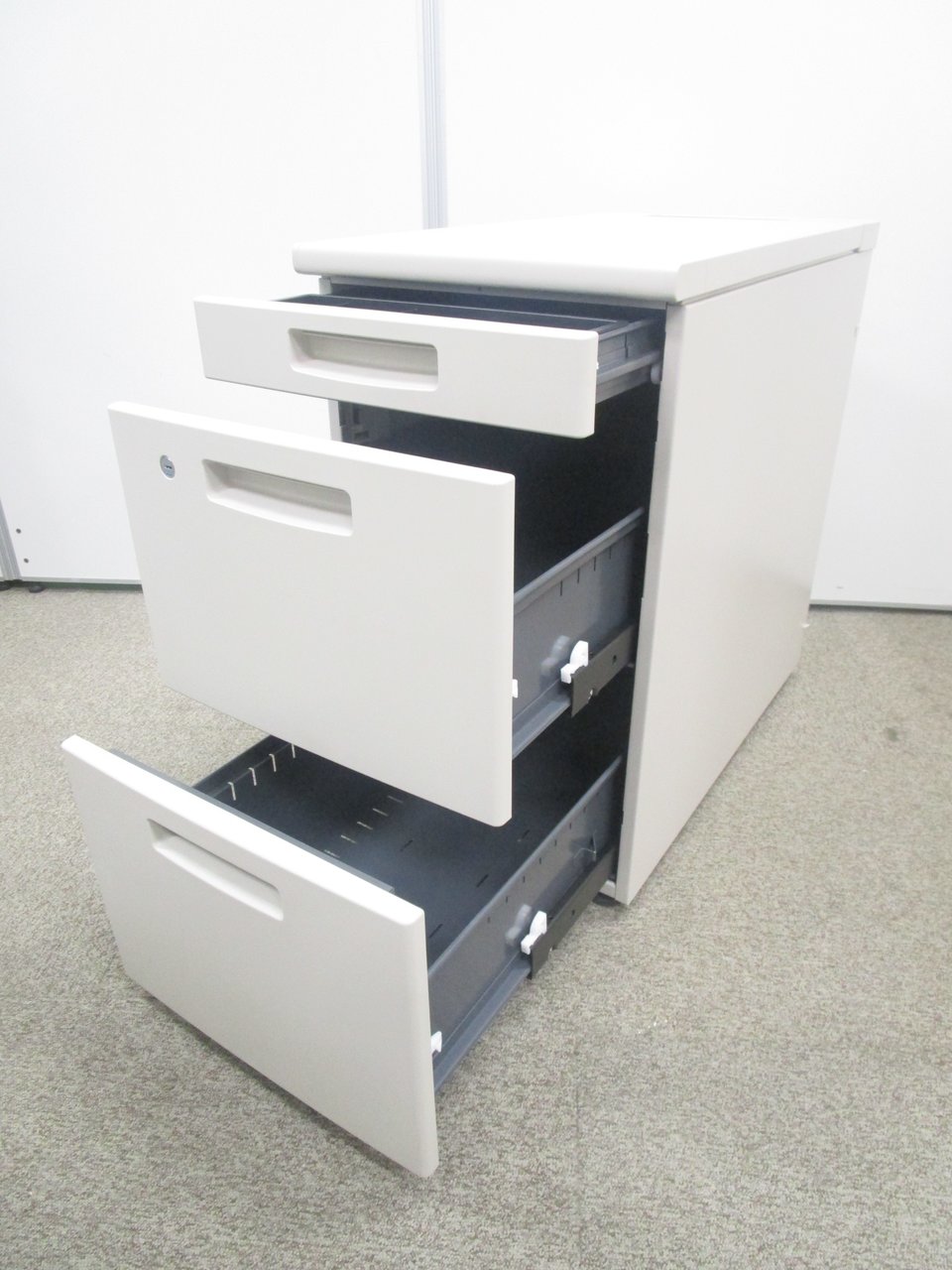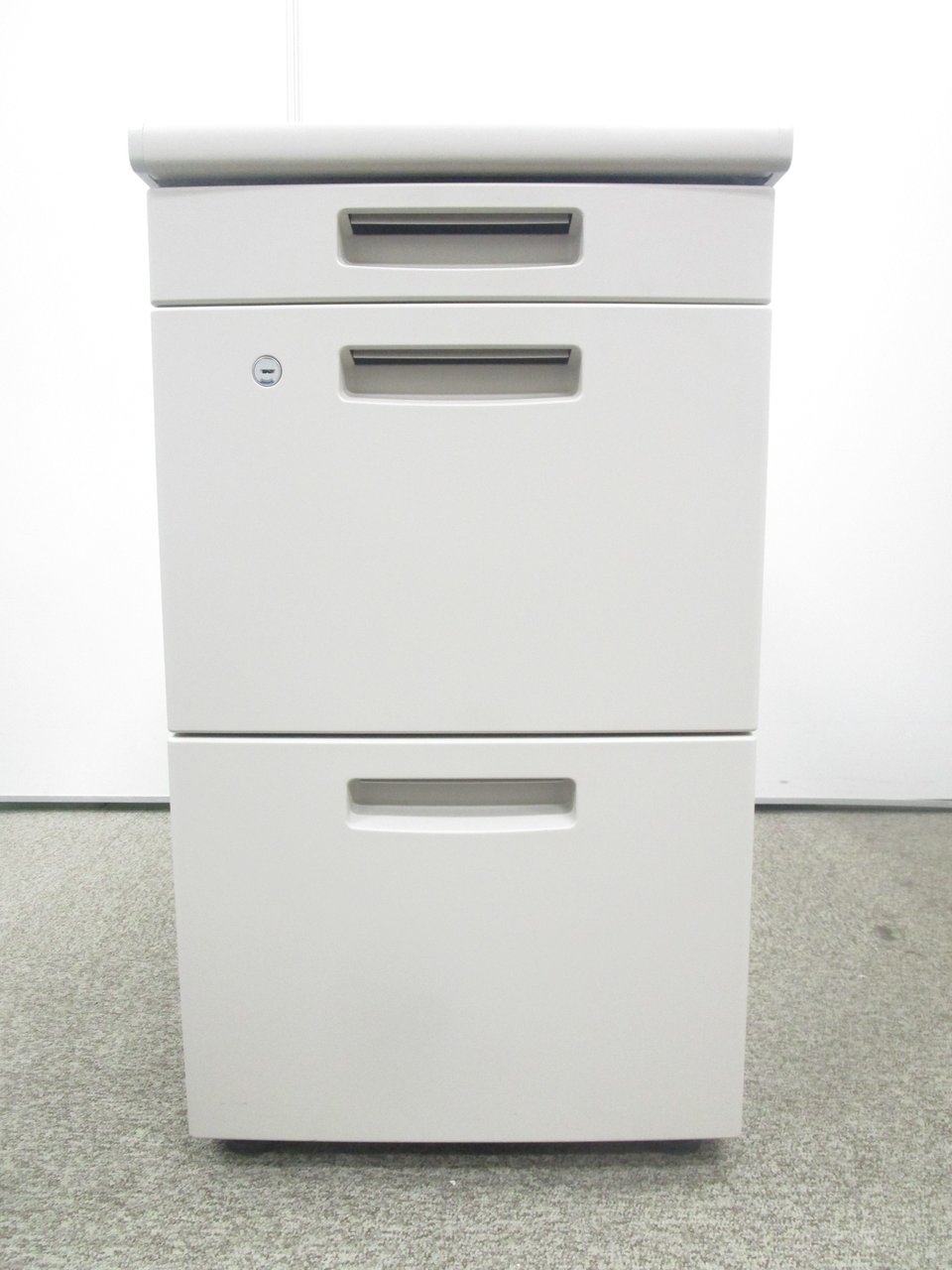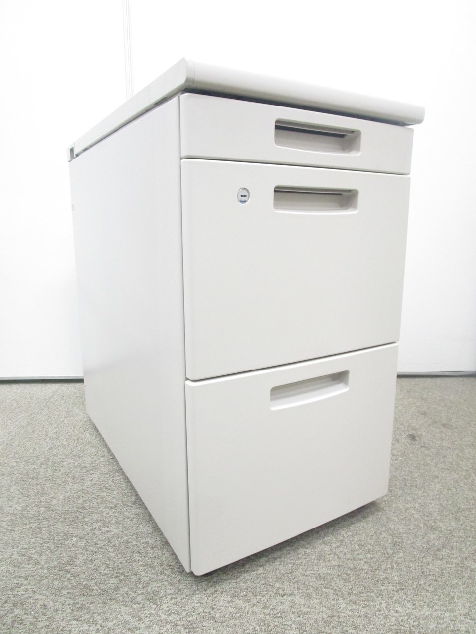 入荷の少ない脇机!デスク上を延長したい方にオススメです!! ■コクヨ/BS+/ニューグレー 脇机 3段ワゴン H700㎜ シリンダー錠