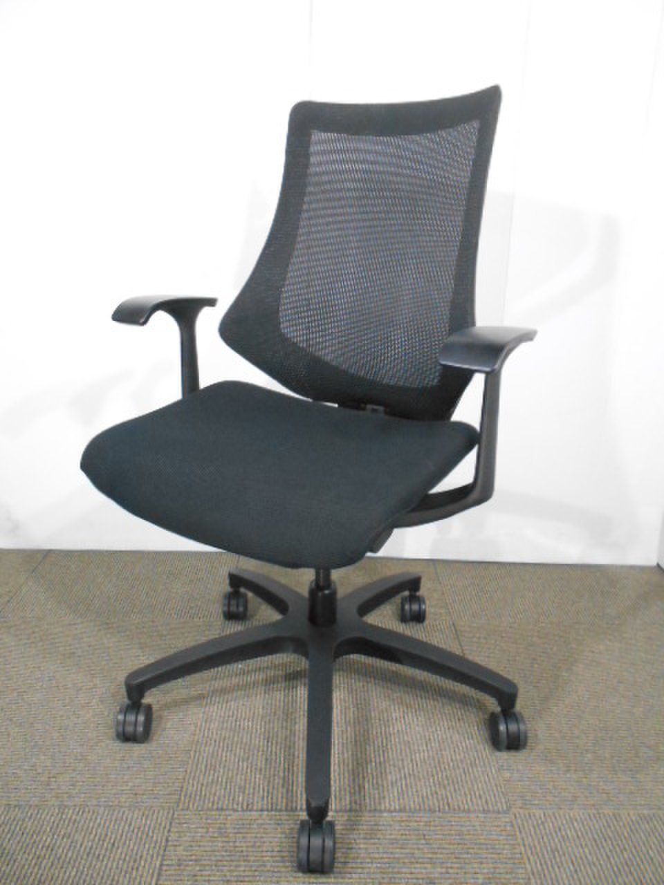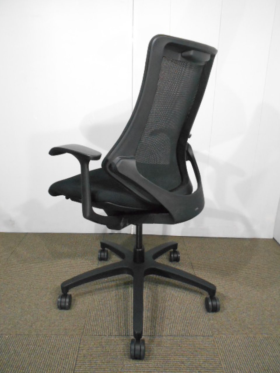 【三次元フォルムが腰にフィット!】希少なエラストマータイプ! ■イトーキ製 エフチェア 肘付 ブラック ハイバック ■姿勢の変化にフレキシブルに対応!