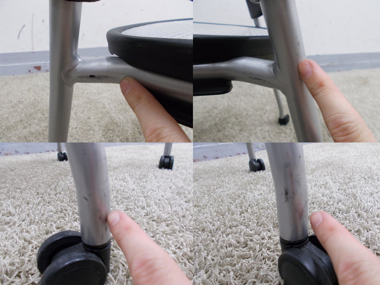 - 目立つ箇所あり傷・破れ・ほつれ・へたり・しわが多数または深い傷・破れ・ほつれ・へたり・しわが一部ある。※座面・背もたれ、シェル、脚部等にある。