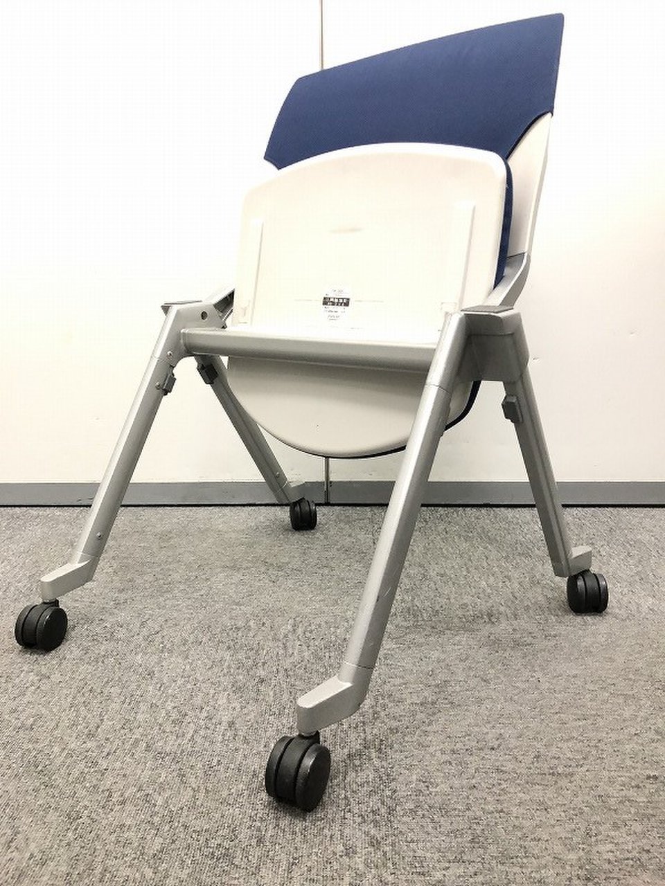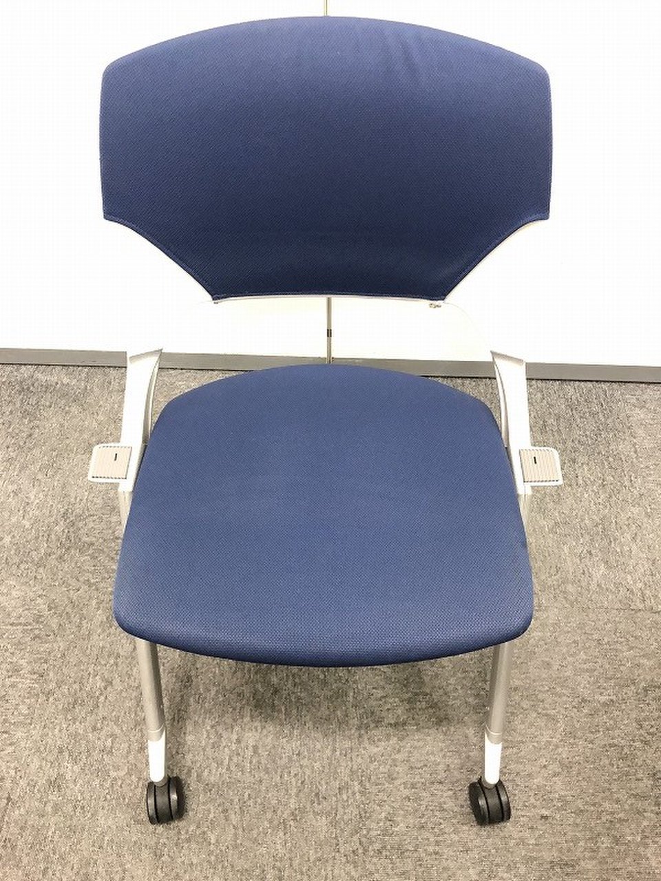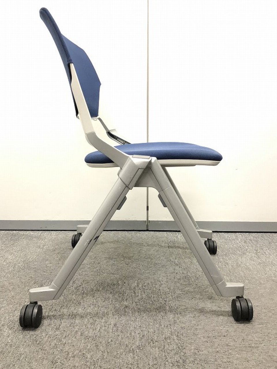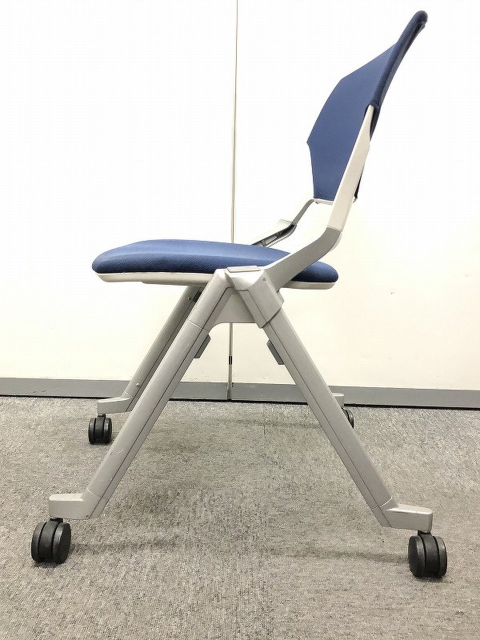 【12脚入荷!】内田洋行製スタッキングチェア|2018年製|キャスター付で移動もらくらく! 中古 ネスティング可能 ブルー ロット 会議室 【倉庫在庫品】