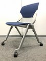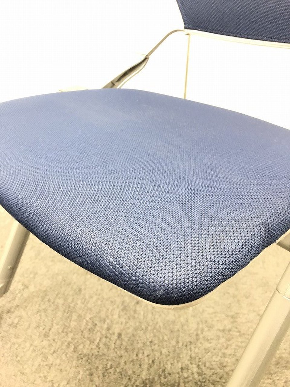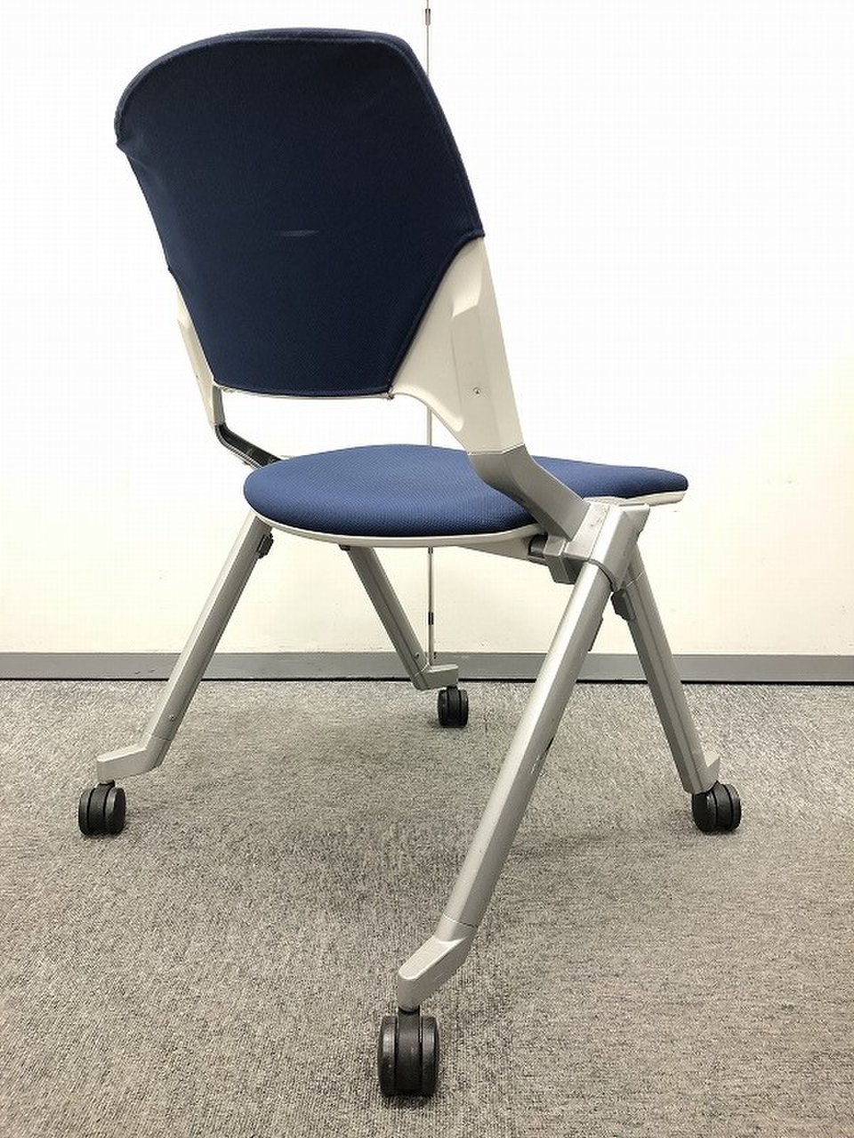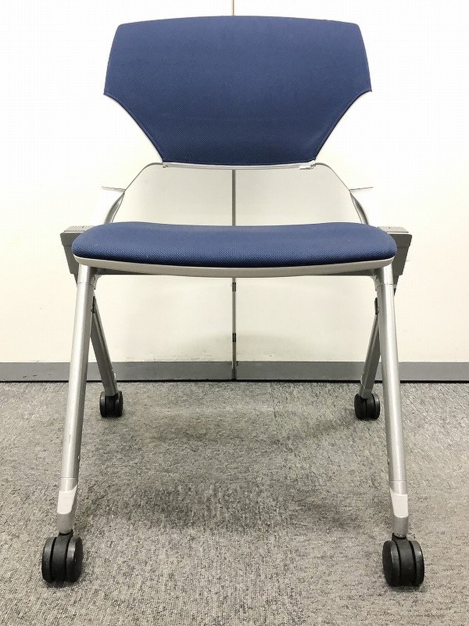 【12脚入荷!】内田洋行製スタッキングチェア|2018年製|キャスター付で移動もらくらく! 中古 ネスティング可能 ブルー ロット 会議室 【倉庫在庫品】