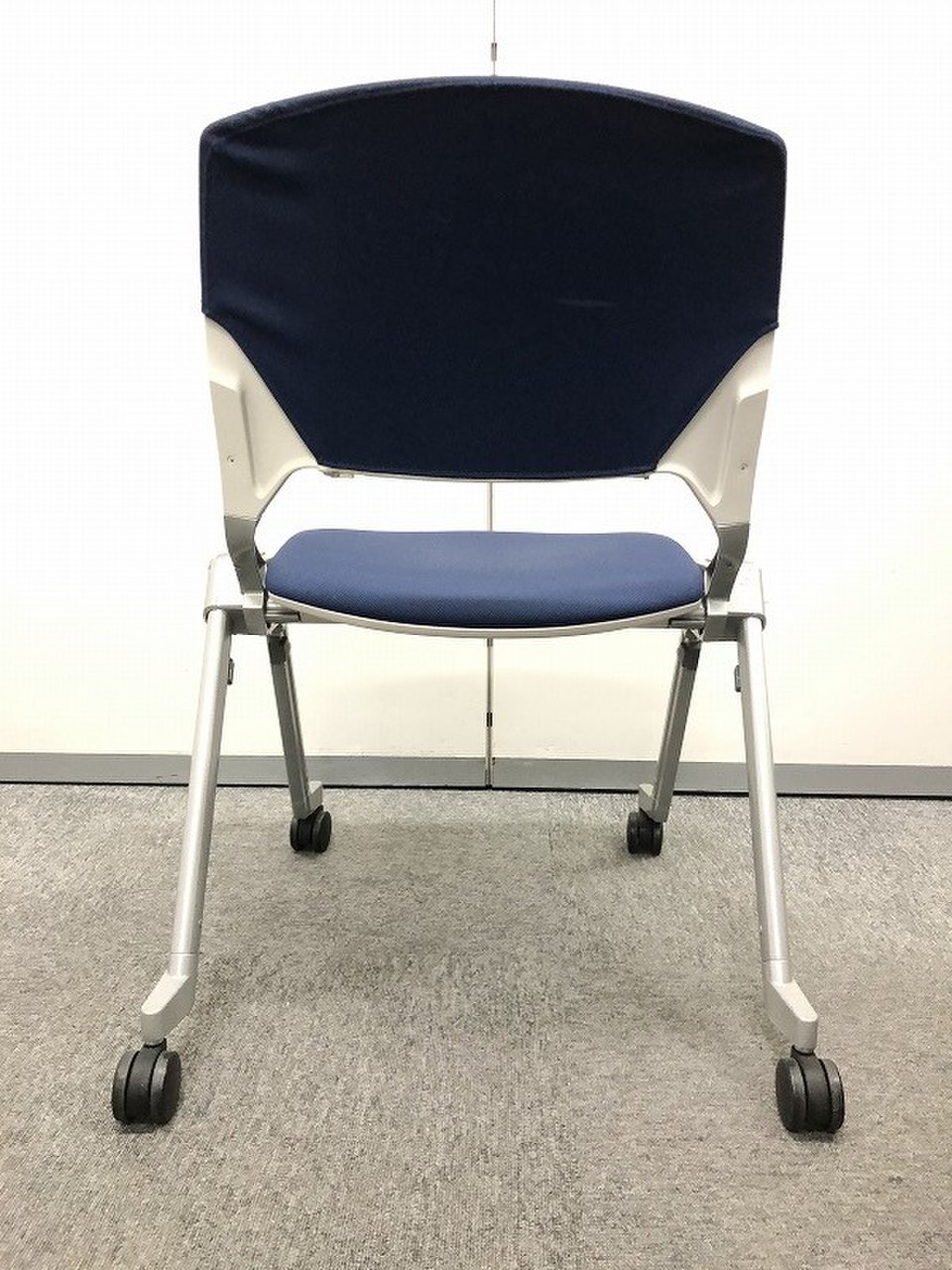 【平行収納、重ねての収納どちらも可能な珍しい仕様のミーティングチェア!】■ウチダ(UCHIDA)製 FM-320シリーズ スタッキングチェア ネスティングチェア 肘無し キャスター付 ■ダークブルー【AD】