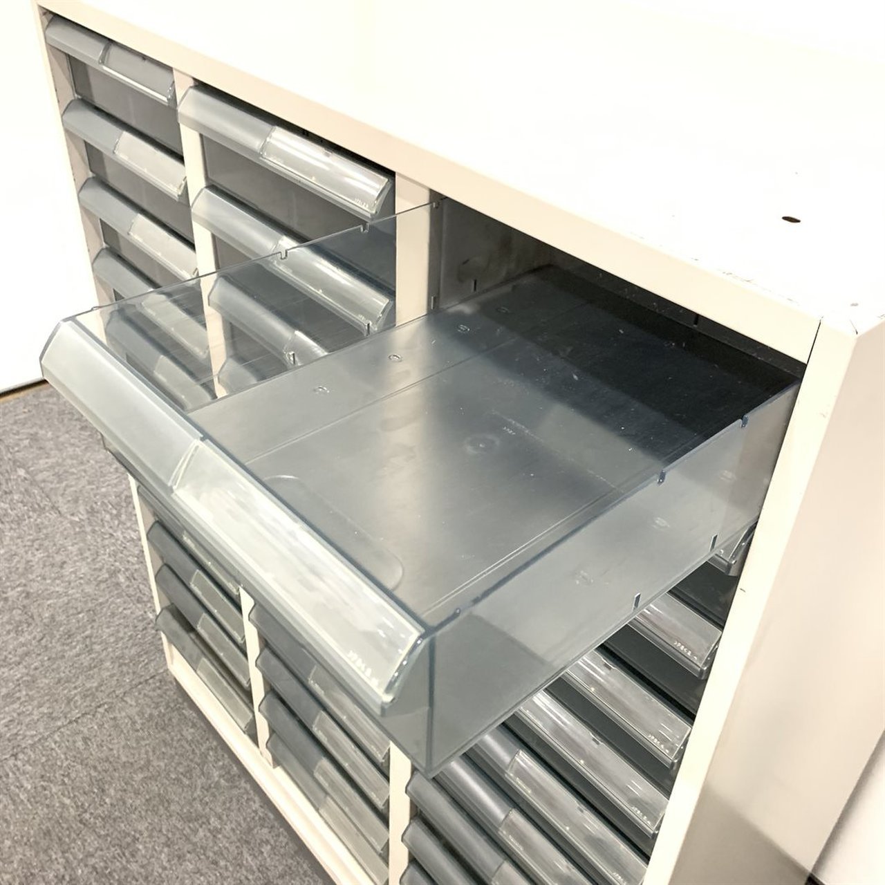 書類整理の強い味方、クリスタルトレーキャビネットです。