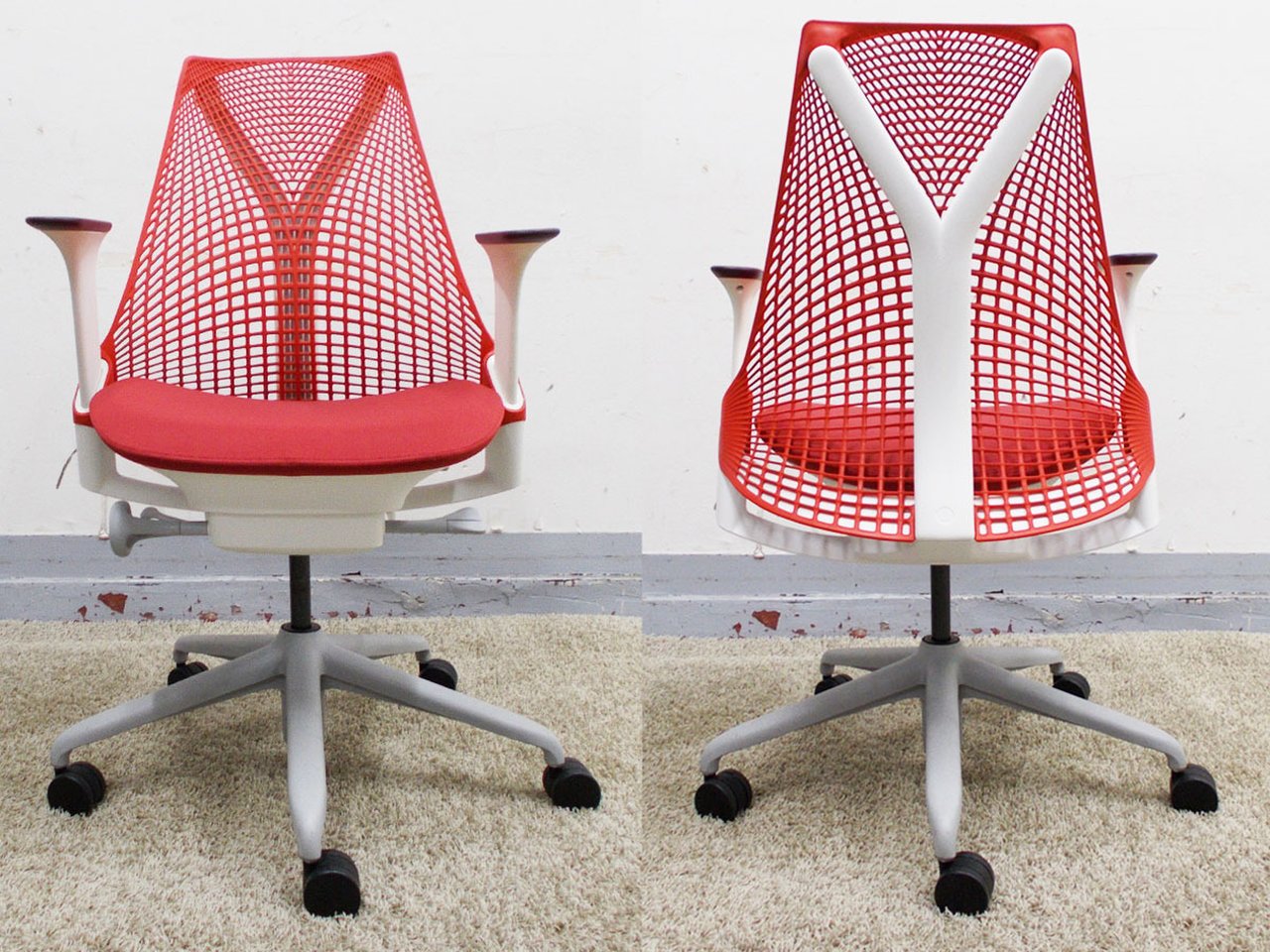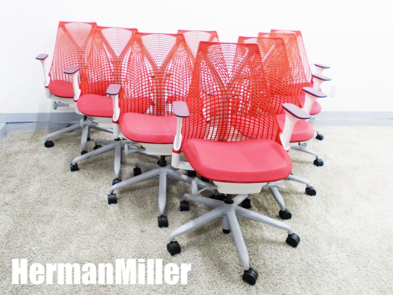 HermanMiller/ハーマンミラー セイルチェア 肘付8脚セット ホワイトX赤 AS1YA23HA N265BBRO829112- デザイナーズ家具センター