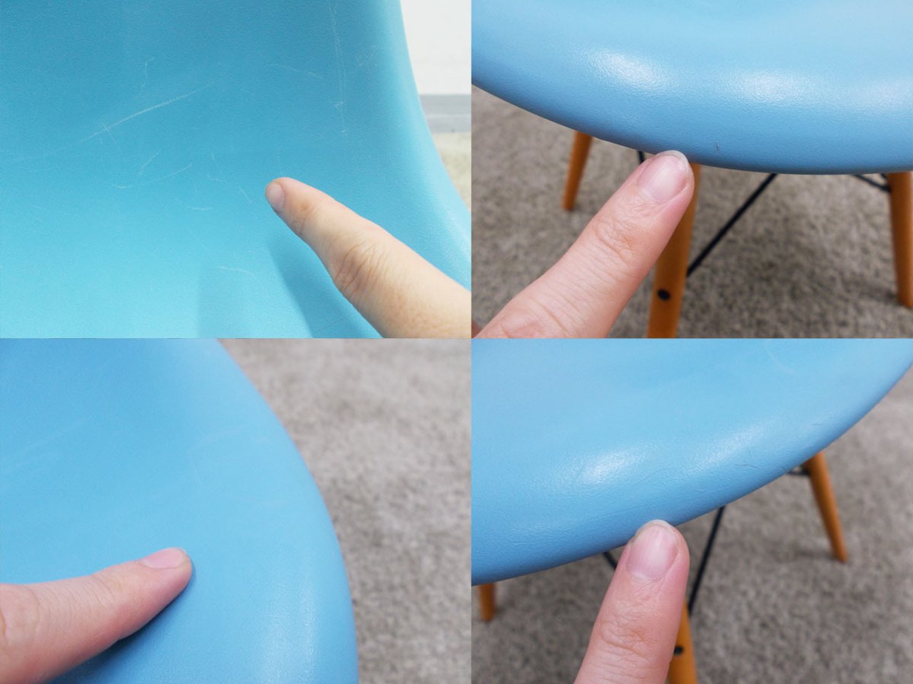 - 目立つ箇所あり傷・破れ・ほつれ・へたり・しわが多数または深い傷・破れ・ほつれ・へたり・しわが一部ある。※座面・背もたれ、シェル、脚部等にある。