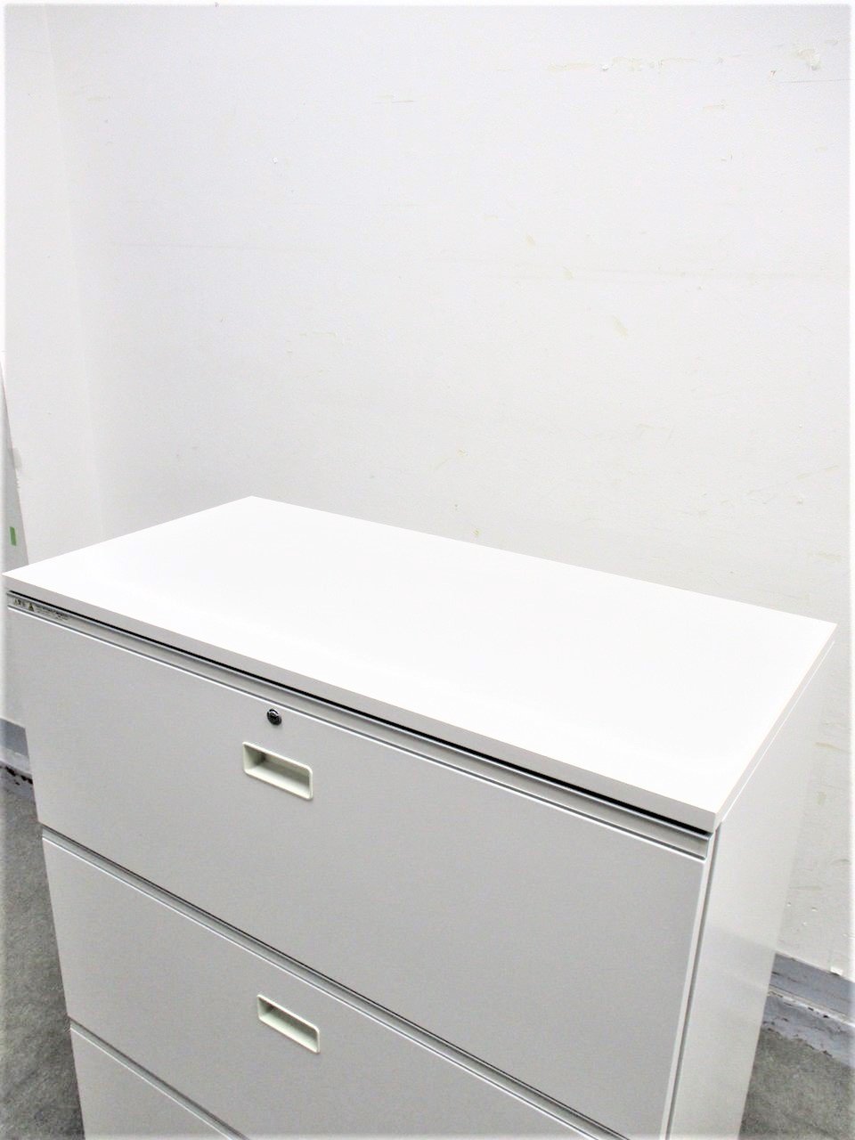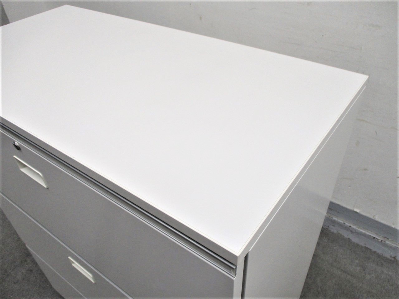 【A4ファイルも沢山収納可能!ホワイトカラーの人気シリーズ3段ラテラル書庫!】/オススメ(おすすめ) /人気商品【弊社使用欄:A01013834】3段ラテラル書庫/ローキャビネット/天板付き/ホワイト/シリンダー錠/ITOKI/THIN LINE■イトーキ/シンライン※取っ手部分日焼あり