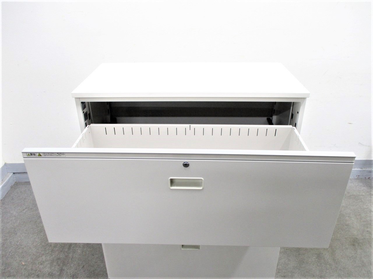 【珍しい2段ラテラルタイプ!】耐久性・機能性を兼ね備えたキャビネット!スペースにジャストフィットする引き出し型収納 ■イトーキ/シンライン/ホワイト シリンダー錠