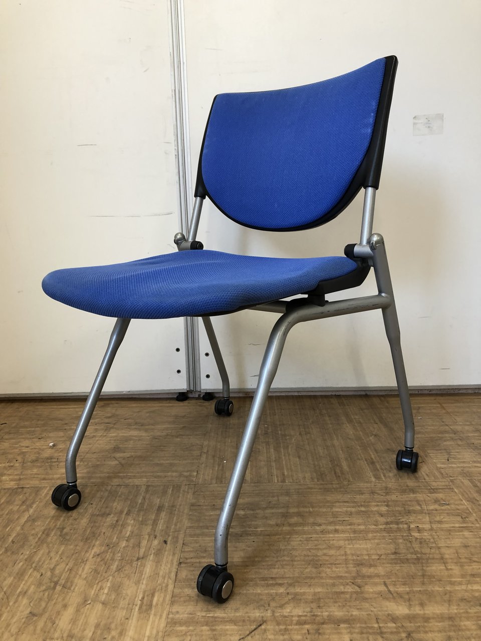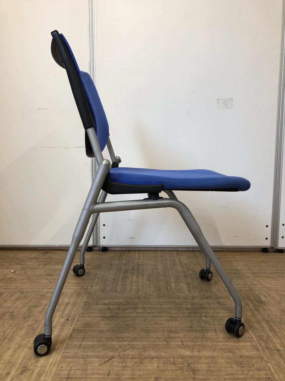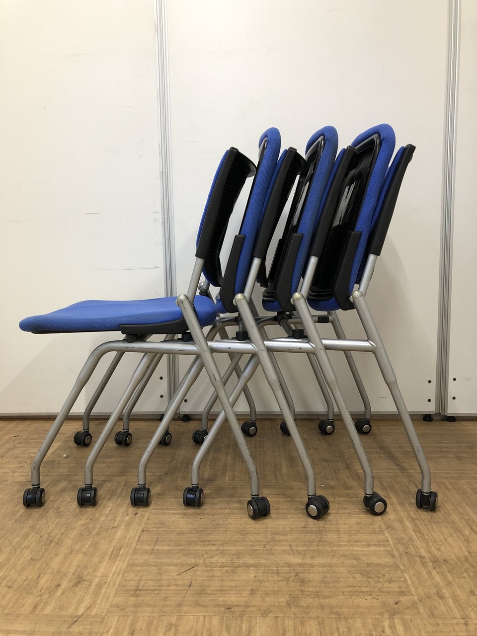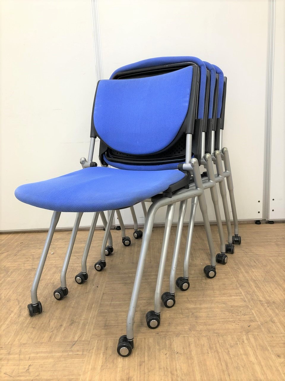 【キャスター付で動かしやすい】オカムラ製ミーティングチェア4脚セット【前後に重ねるネスティングタイプ】- 名古屋本店