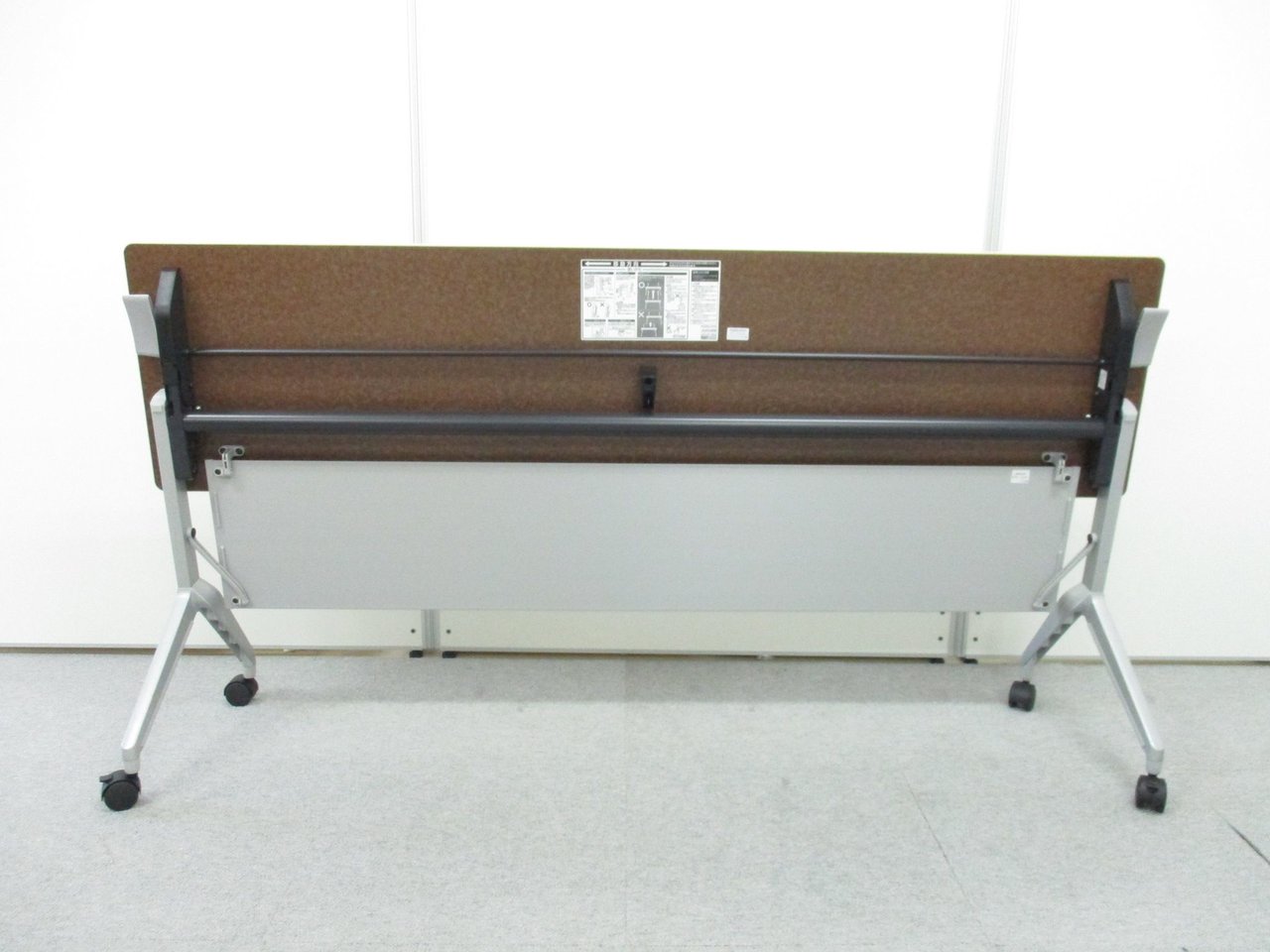 【会議・研修室などに・使わないときは畳んで省スペース!】■コクヨ(KOKUYO)製 リーフライン(Leafline)シリーズ サイドスタックテーブル フラップテーブル W1800×D600㎜ ■木目ナチュラル天板 ■幕板付き 【2~3名での使用に最適】