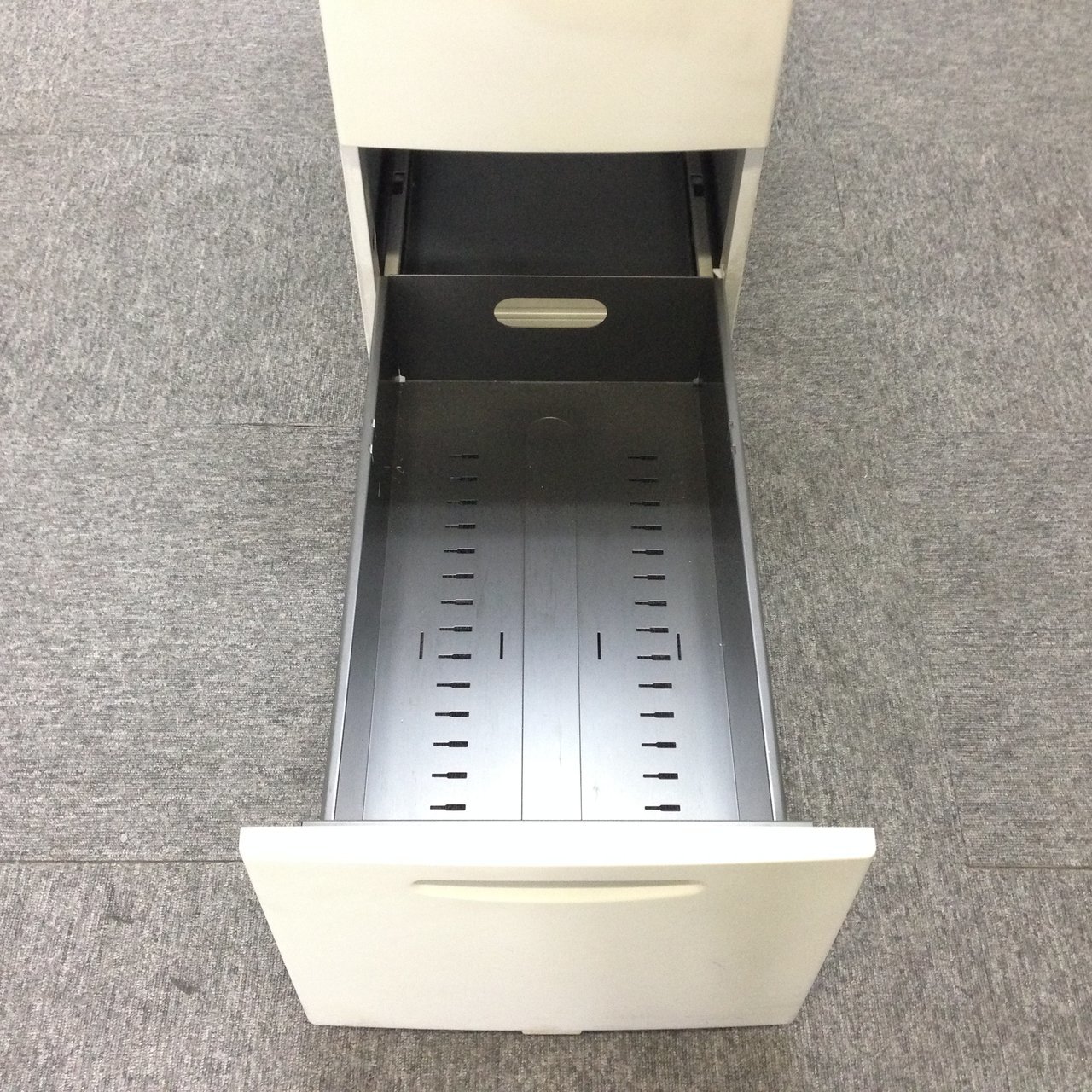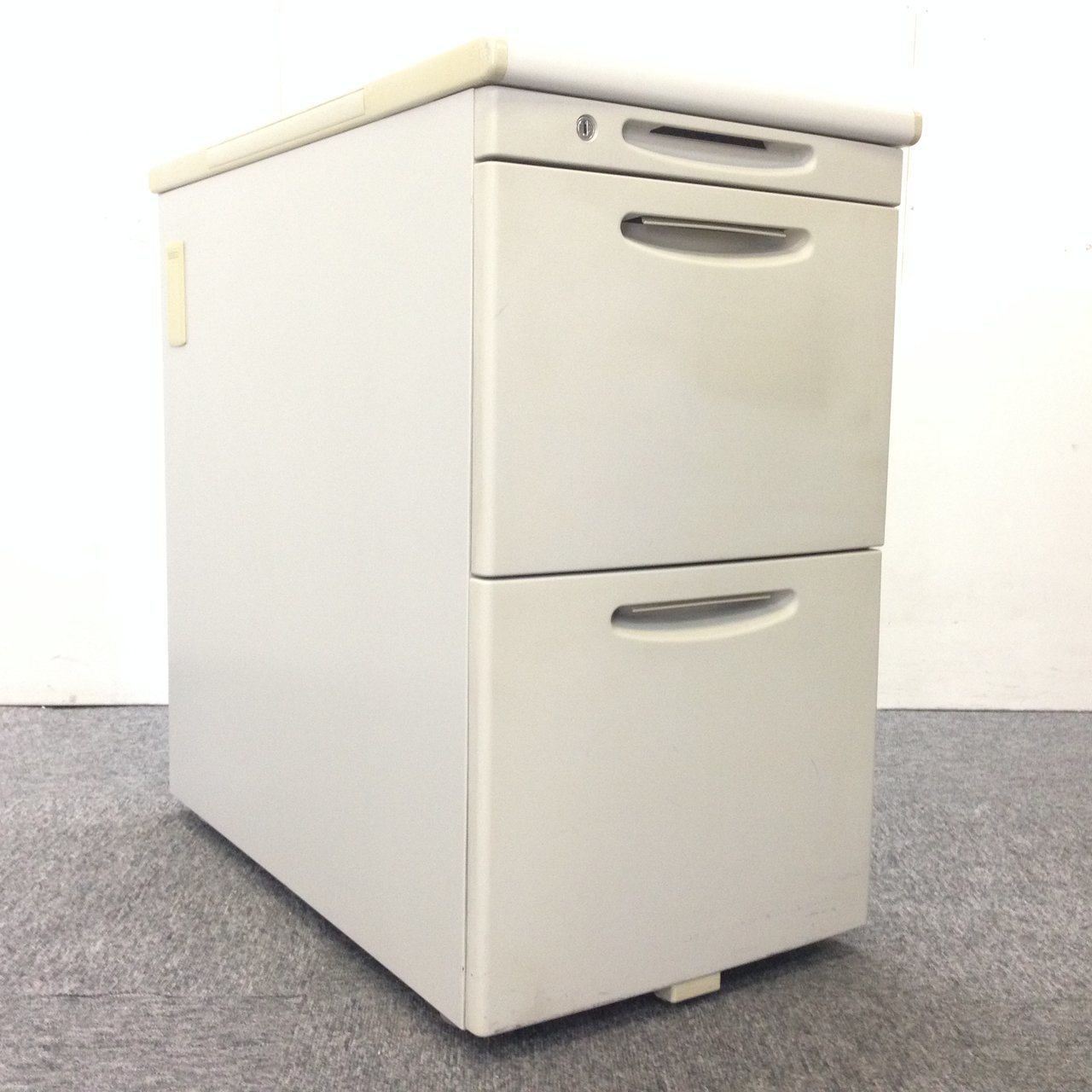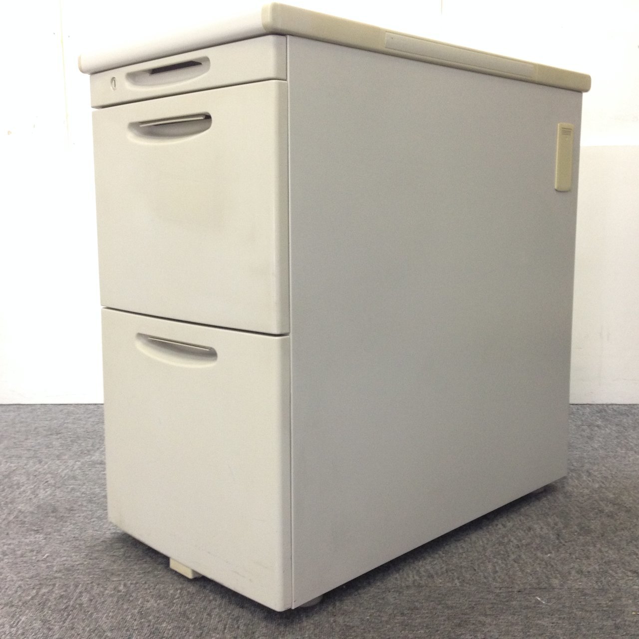 - 一部不具合ありその脇机・ワゴンの本来の効用を果たすための機能以外の一部が使用不可な状態。(例、引出が開閉しづらい、 キャスターロック機能使用不可、ラッチ不良 等がある。)