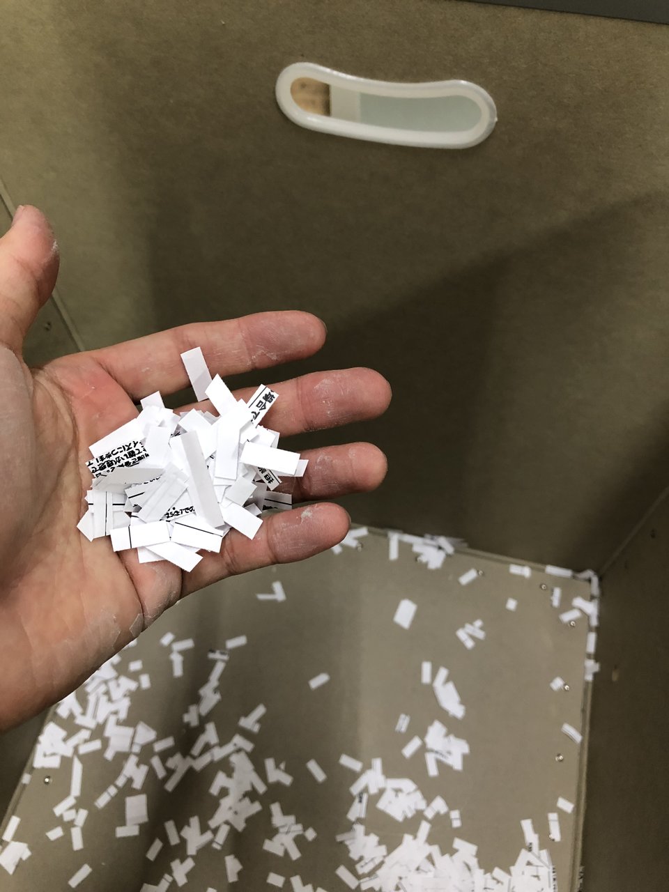新品時では1度に約55枚同時に裁断可能なシュレッダーです。