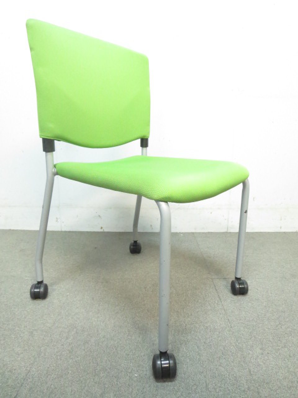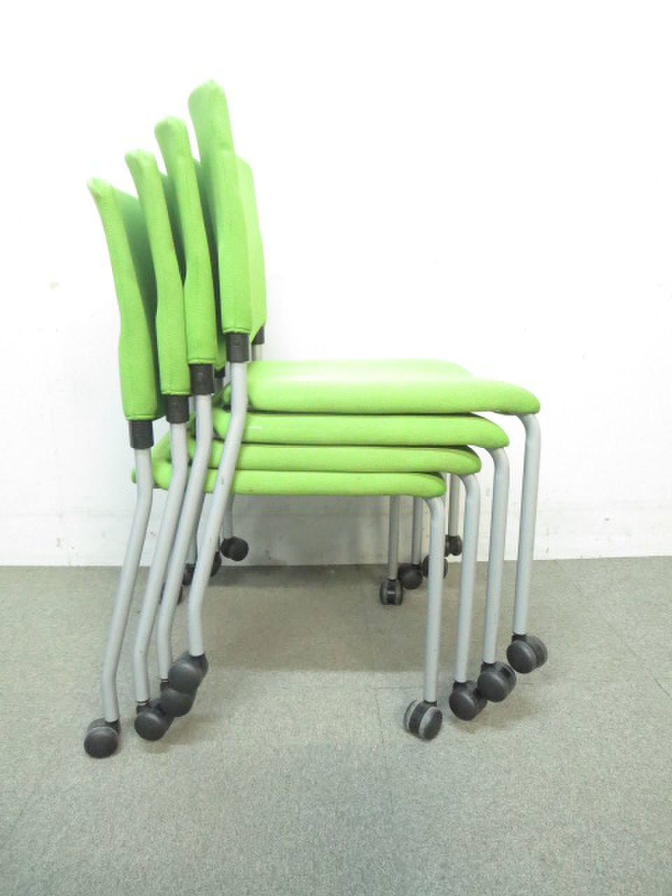 【人気のキャスター付タイプ入荷!】■スタッキングチェア ライムグリーン ■今がチャンス!お値下げ特価品!【J】- 川崎店