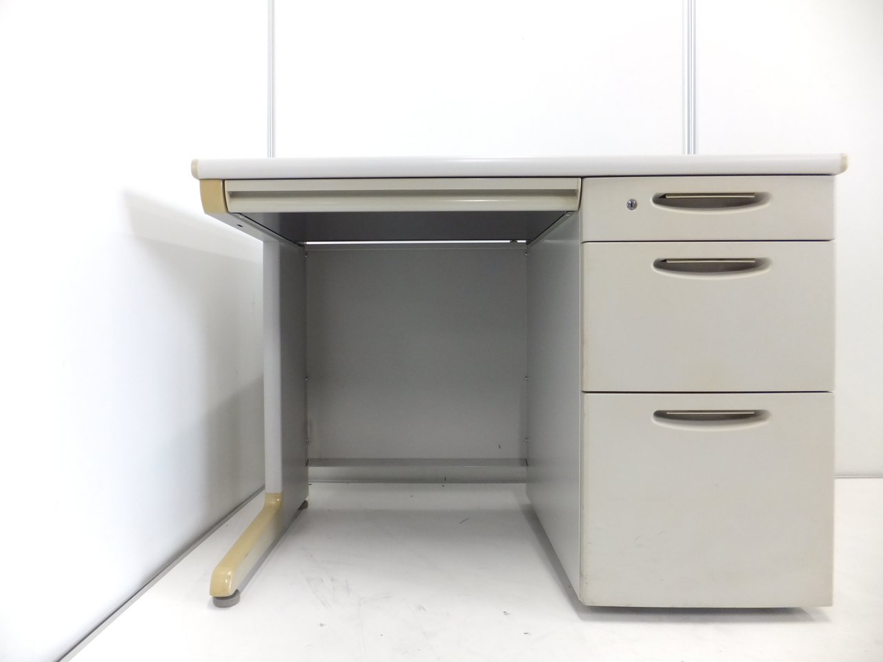 【A01002006】【3段引き出し一体型で圧倒的な収納力!幅はコンパクトな1000㎜タイプ片袖机!】■ オカムラ(okamura)製 SD-Vシリーズ 片袖デスク 幅1000㎜ ■ライトグレー ■シリンダー錠【IB】