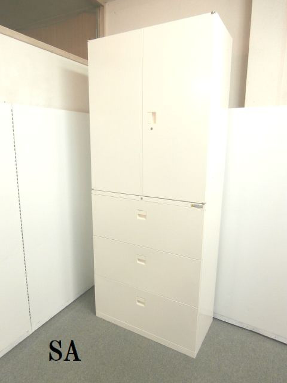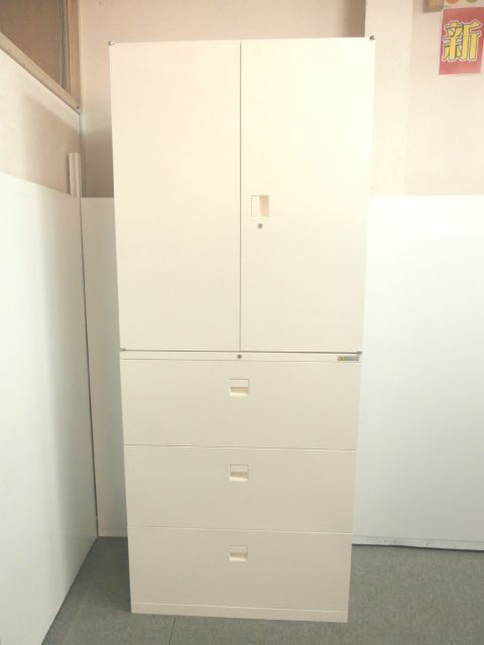 - 一部不具合ありそ引出の開閉不可、施錠不可、棚板無しといったの書庫の本来の効用を果たすための機能以外の一部が使用不可(例、扉、引出の開閉がしづらいなどがある。 )