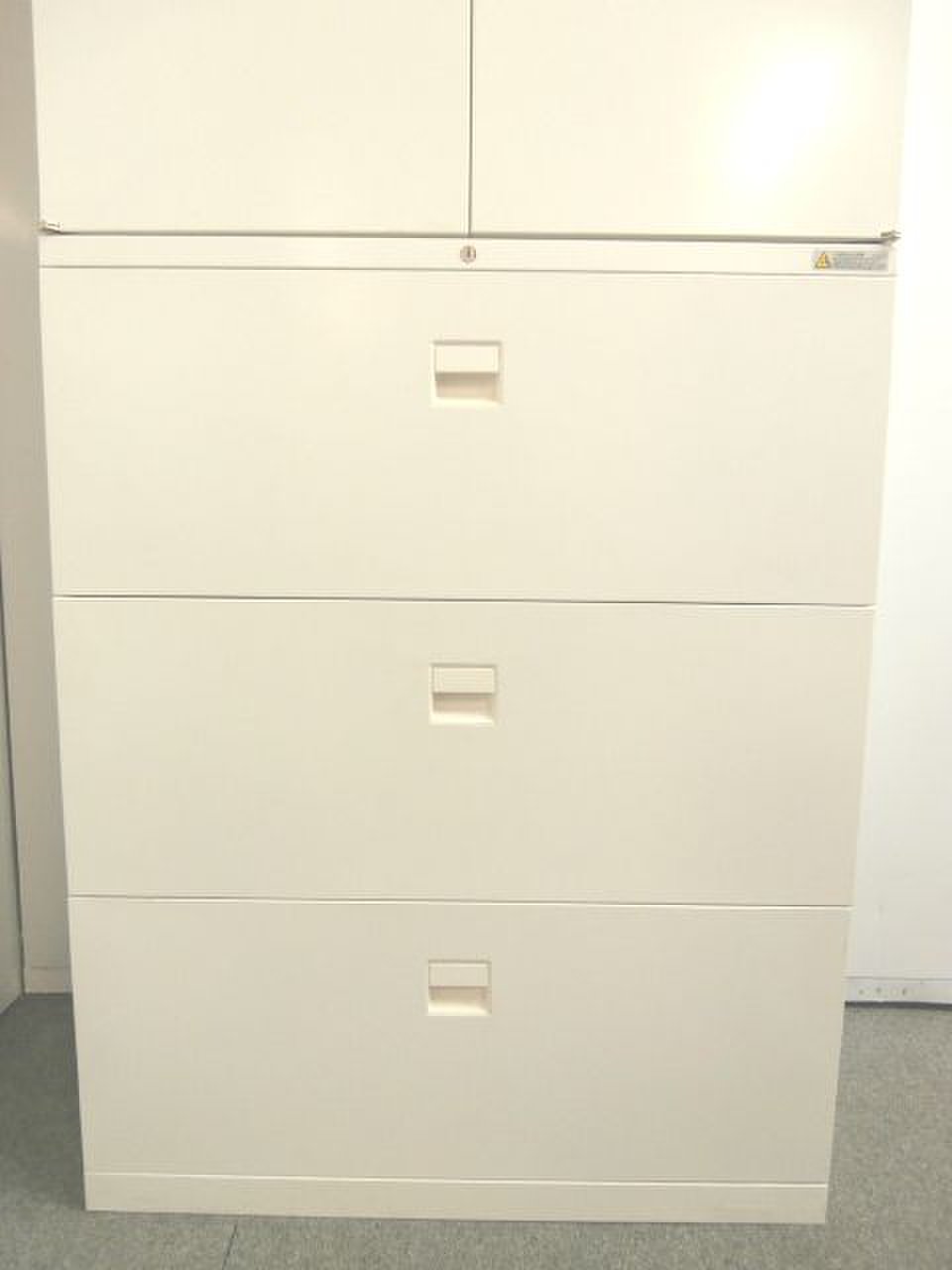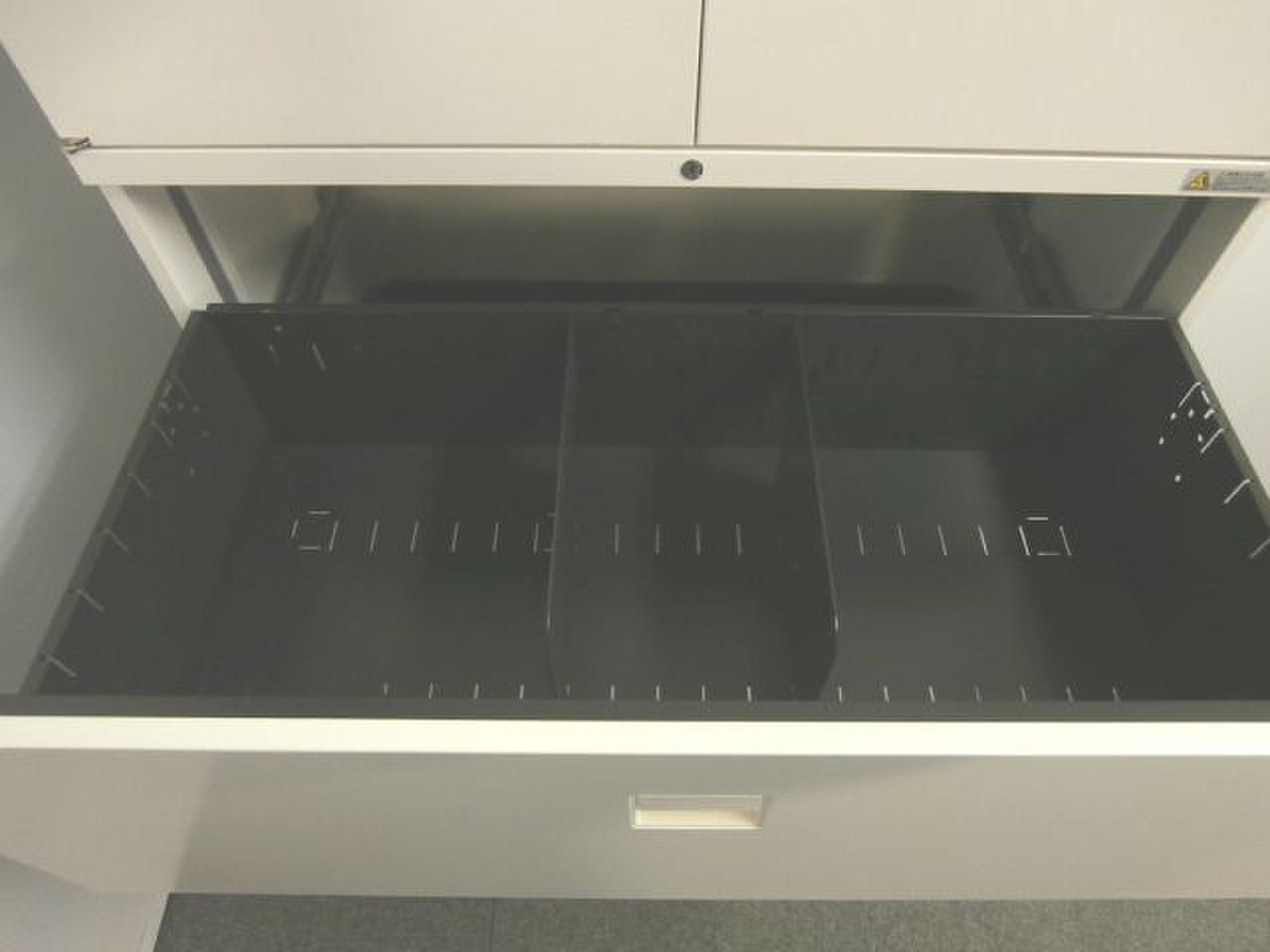 書類の仕分けや管理に便利な3段ラテラル書庫になります。