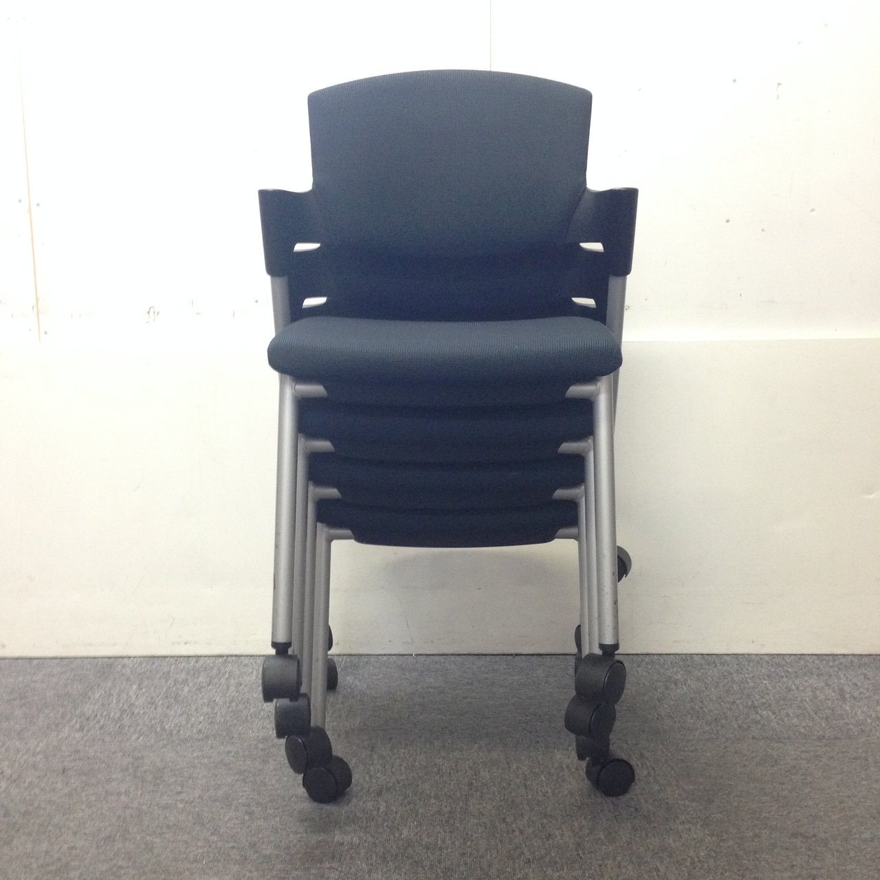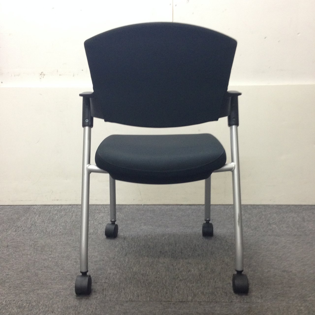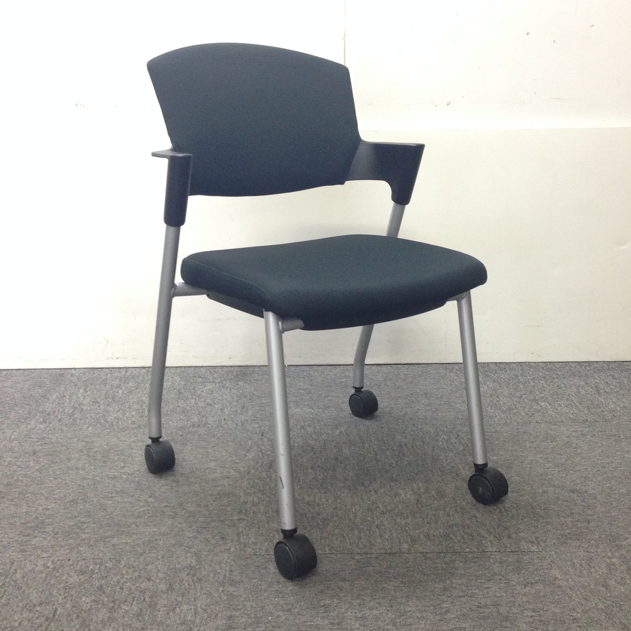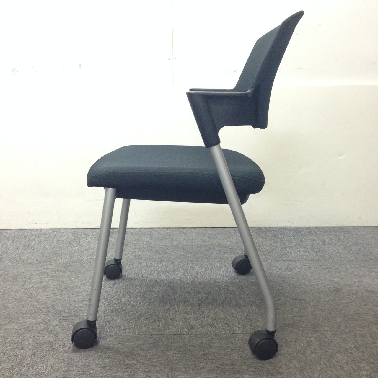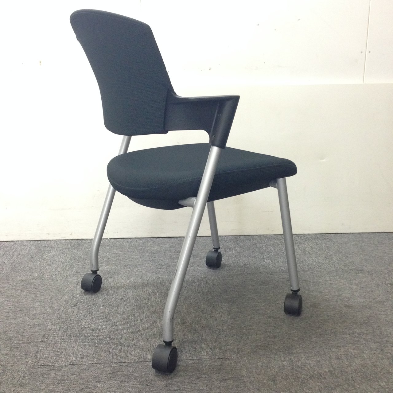 【シンプルスマートなスタッキングチェア!分厚いクッションで長時間でも快適な座り心地!】■スタッキングチェア 肘付ミーティングチェア ■固定肘 ■キャスター付 ■ブラック ■背面樹脂/コクヨ(KOKUYO/プロッティ