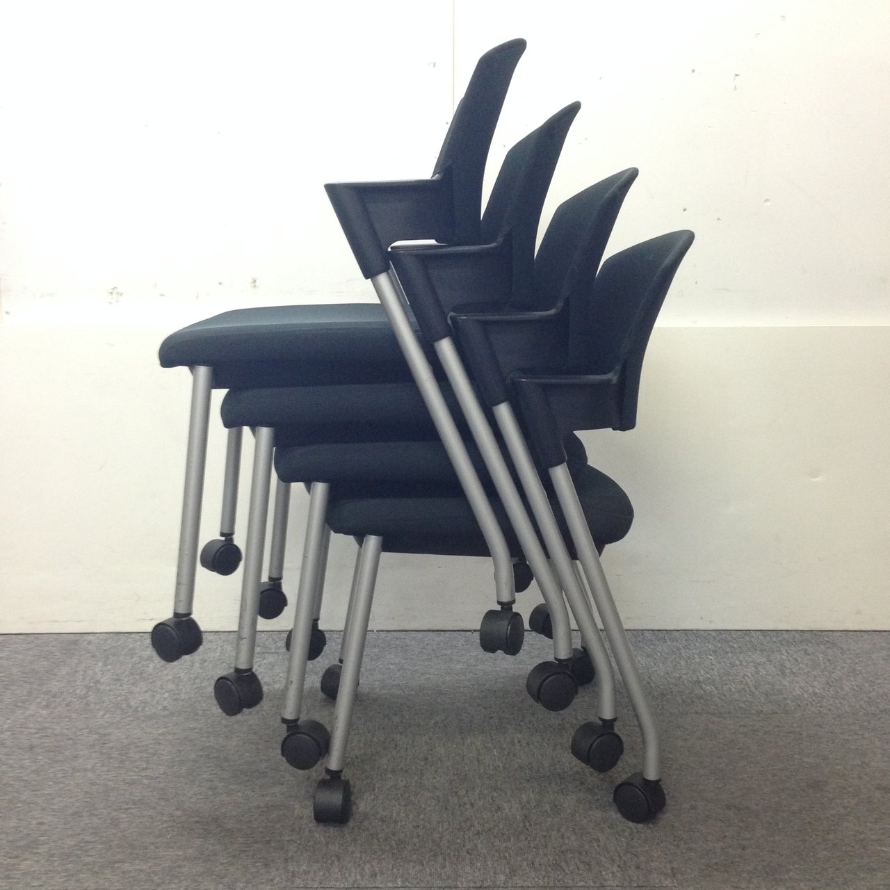【セット商品(チェア×4脚)】【シンプルスマートなスタッキングチェア!分厚いクッションで長時間でも快適な座り心地!】/オススメ(おすすめ) /人気商品【弊社使用欄:A01037619】■スタッキングチェア 肘付ミーティングチェア ■固定肘 ■キャスター付 ■ブラック ■背面樹脂/コクヨ(KOKUYO/プロッティ