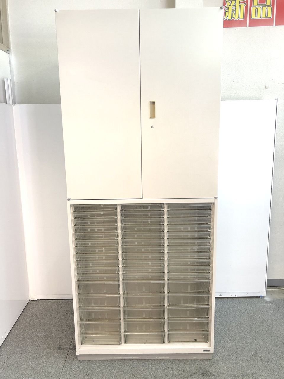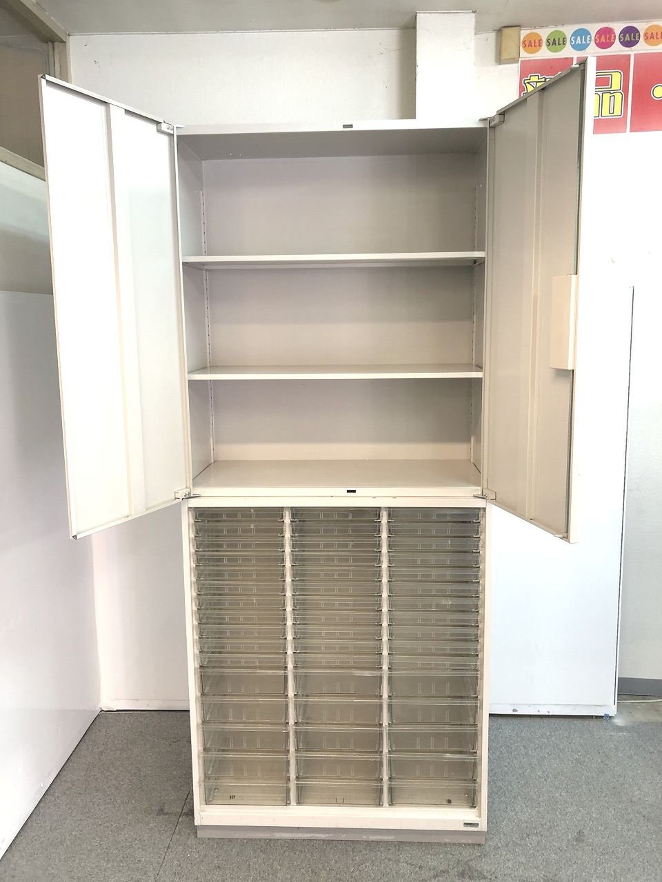 【使い分けで収納がラクになる両開き書庫とクリスタルトレイの上下書庫セット商品です!!】- 仙台店