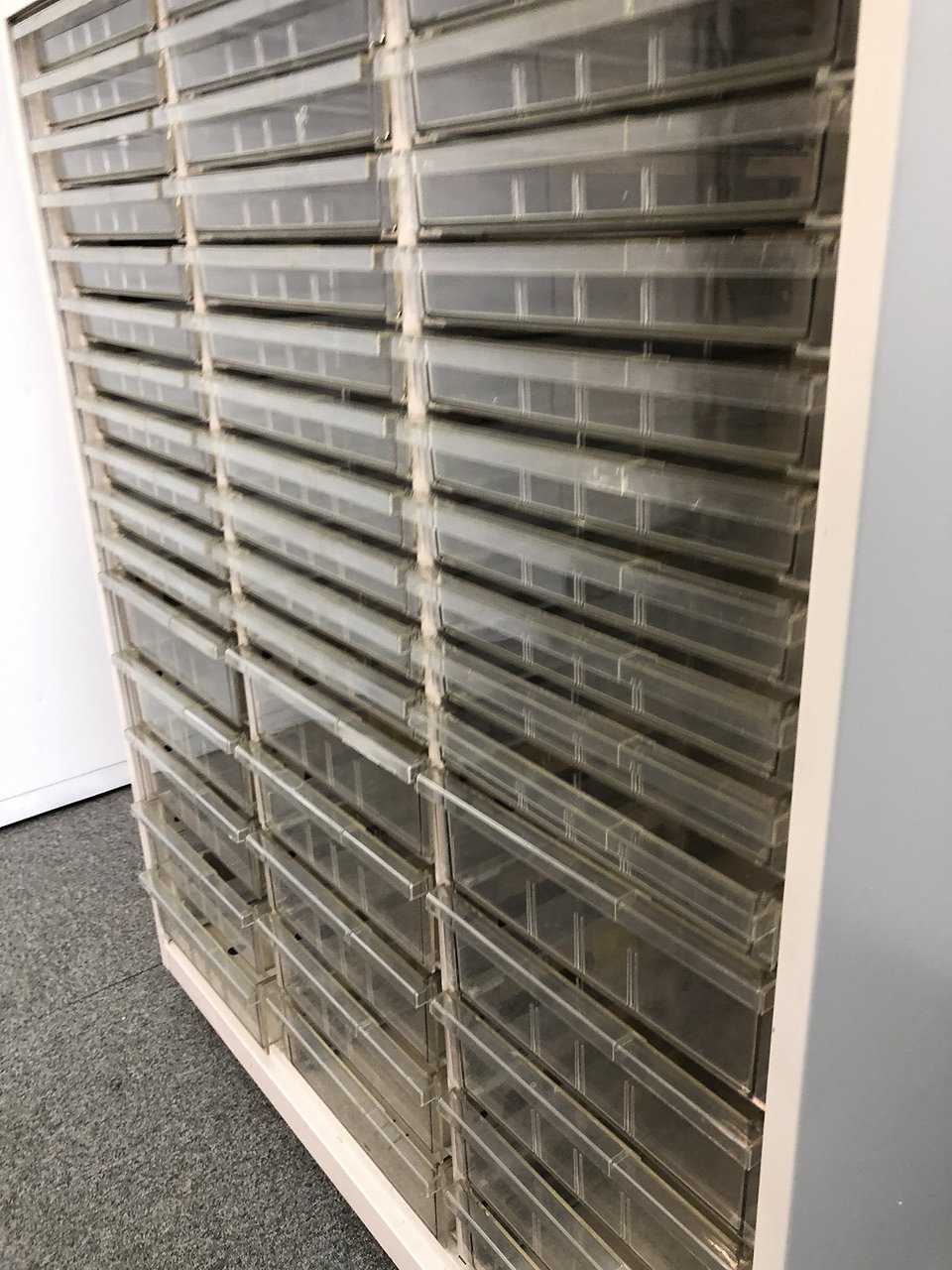 クリスタルトレイ細い部分が11段と太い部分が5段3列の48カ所の収納タイプになります。