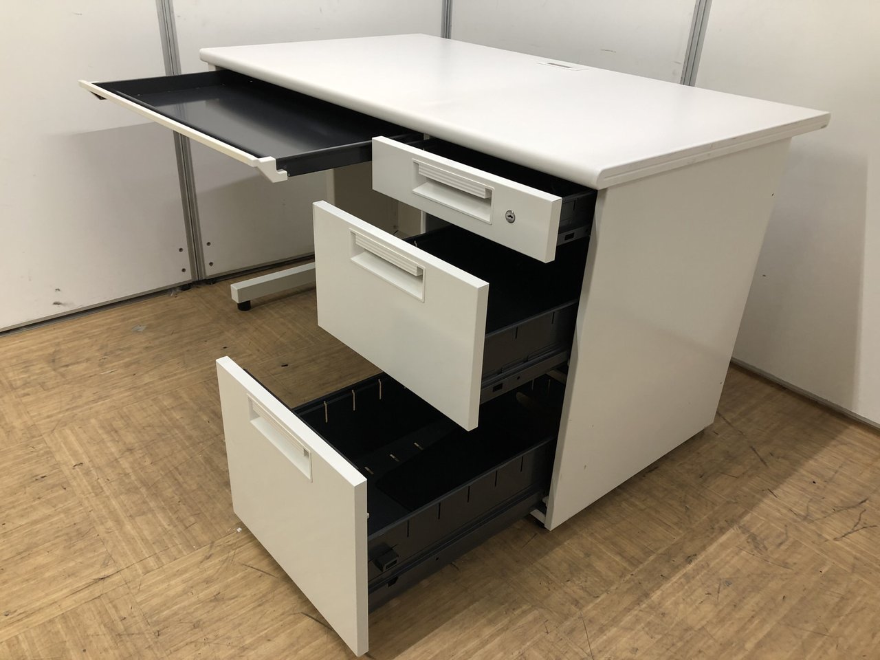 【残り1台】プラス製 片袖机 LEEDシリーズ ホワイト【幅1200】- 名古屋本店