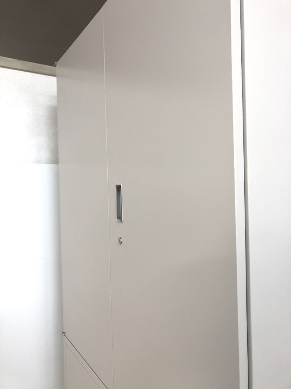 棚板調整が可能な両開き書庫と引き出しも可能なケンド書庫で