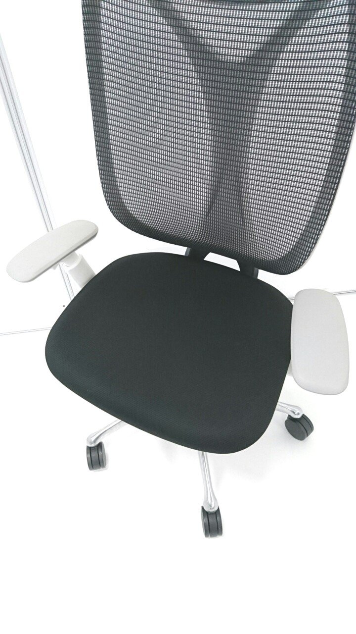 - 肘パッド部の上下(1D)、角度(2D)、前後(3D)、左右(4D)の調整が可能。可動幅は、上下100mm、内側20度、外側10度、前後40mm、左右片側25mmです。