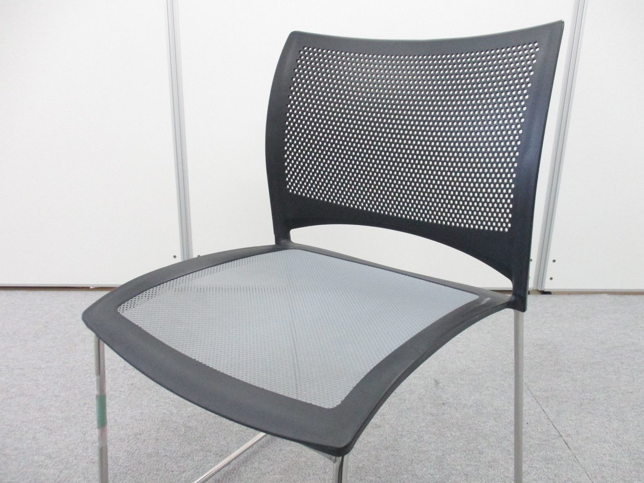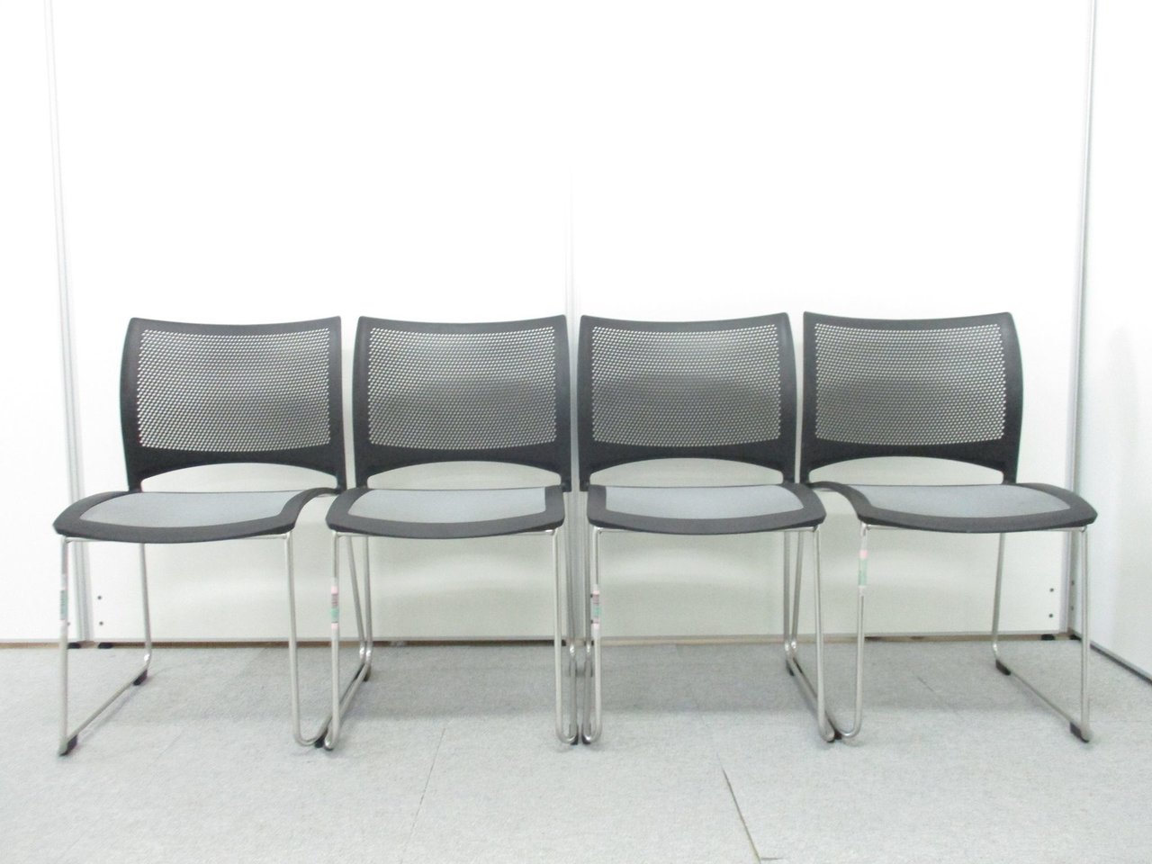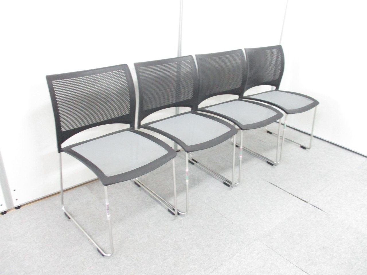 【4脚セットがお買い得!!】スタッキングチェア フレームがブラックカラーの座面メッシュグレーカラーでスタイリッシュでデザイン!- 足立・葛飾店