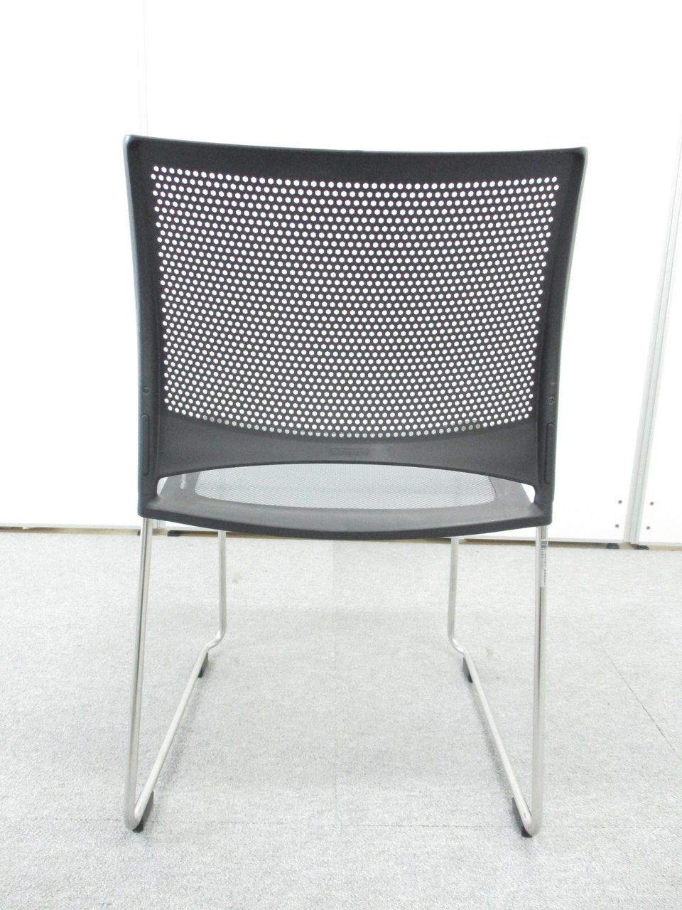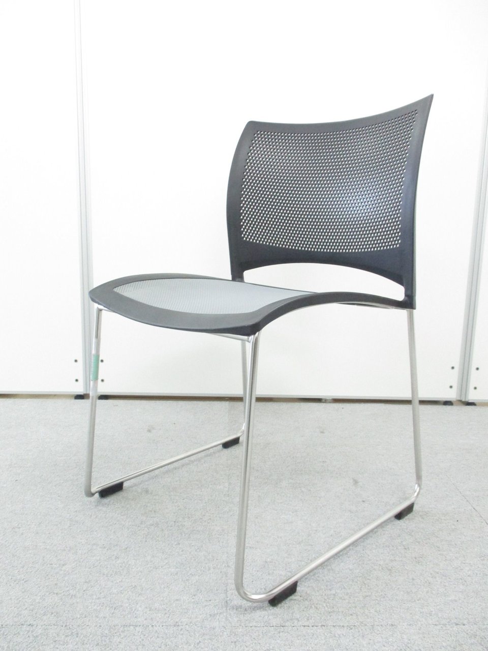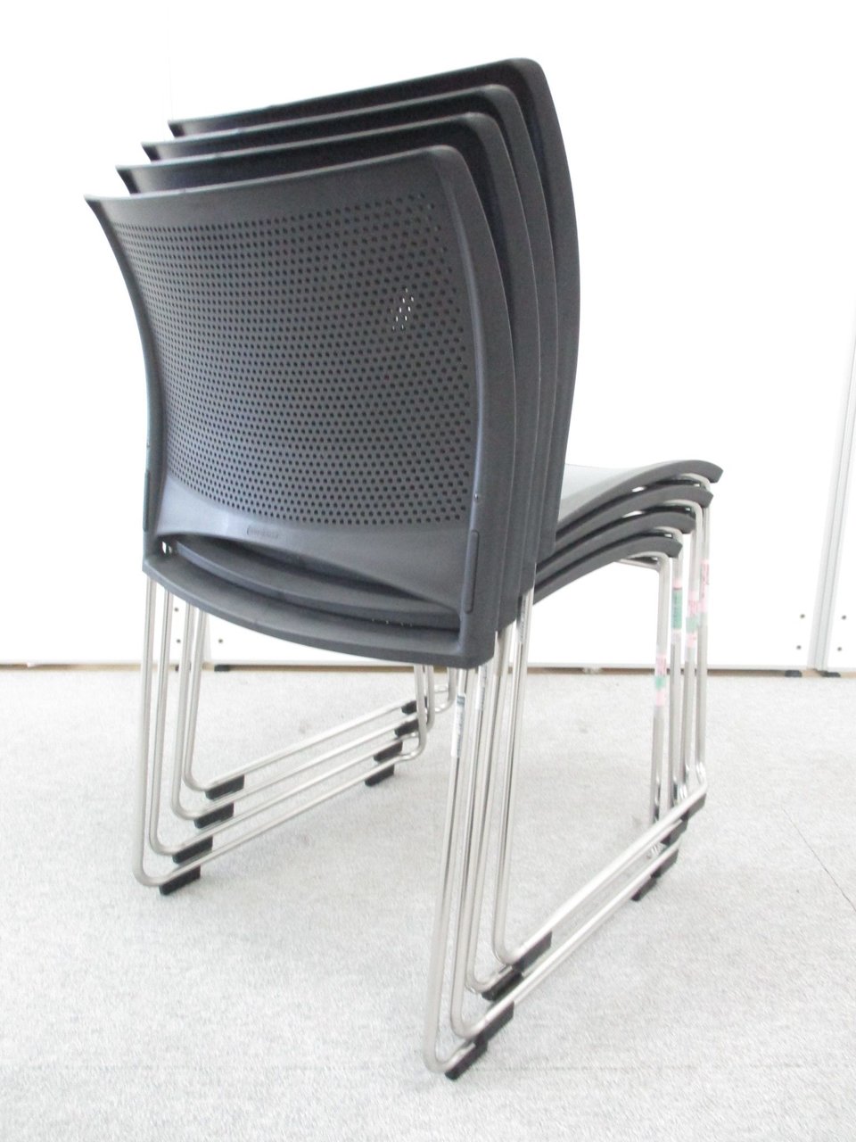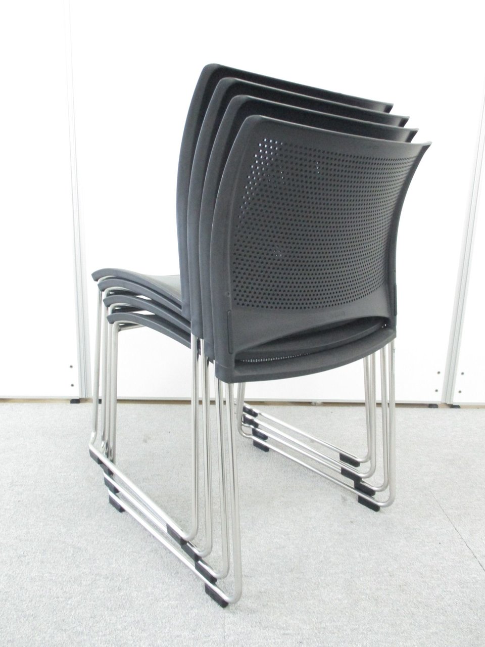 【4脚セットがお買い得!!】スタッキングチェア フレームがブラックカラーの座面メッシュグレーカラーでスタイリッシュでデザイン!- 足立・葛飾店