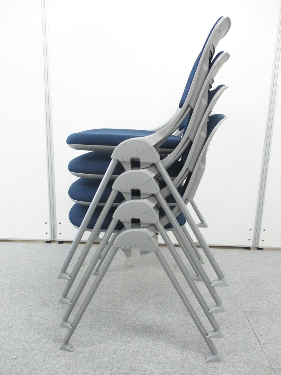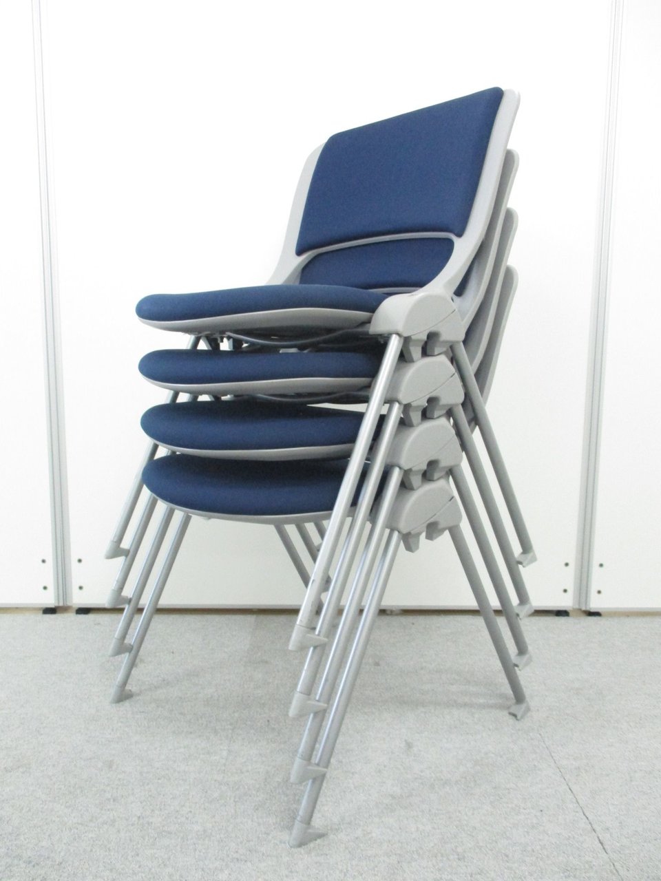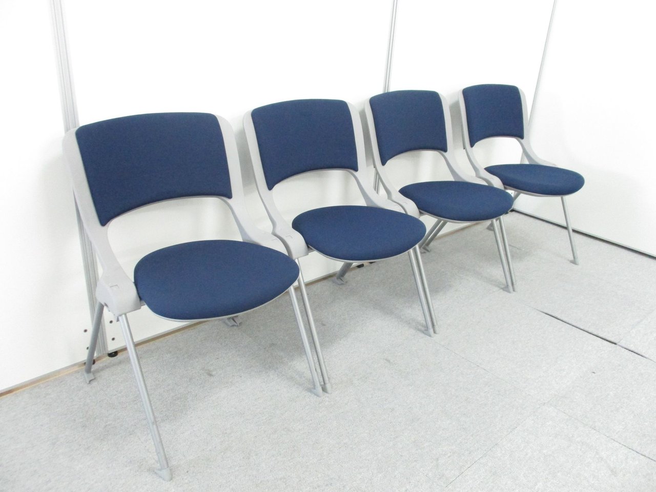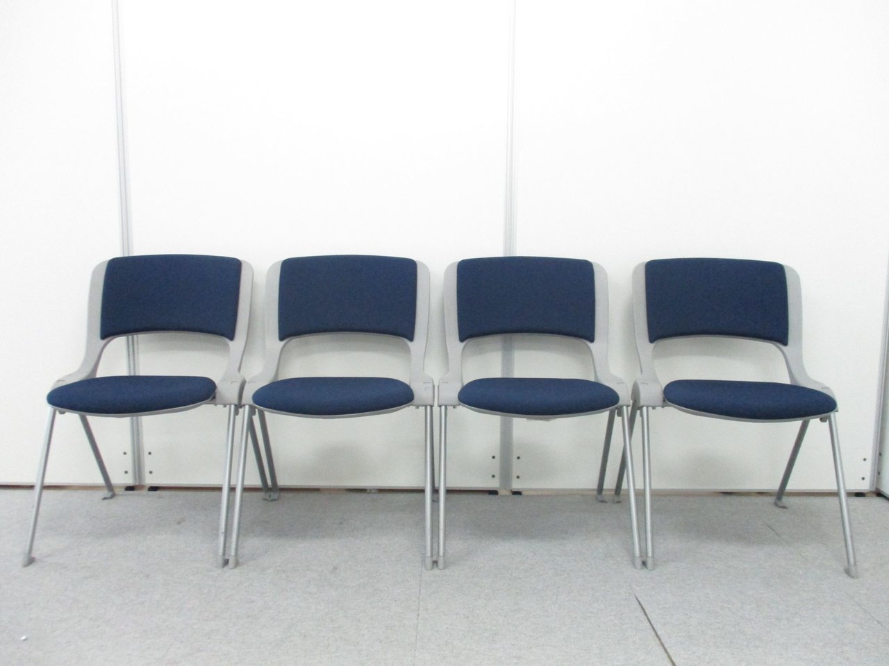 【在庫一掃セール品】[4脚セット]内田洋行製 スタッキングチェア MX-40シリーズ■汚れの目立ちにくいダークブルー!!【α】- 足立・葛飾店