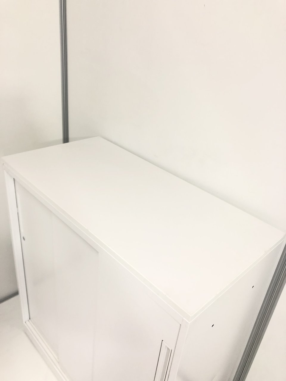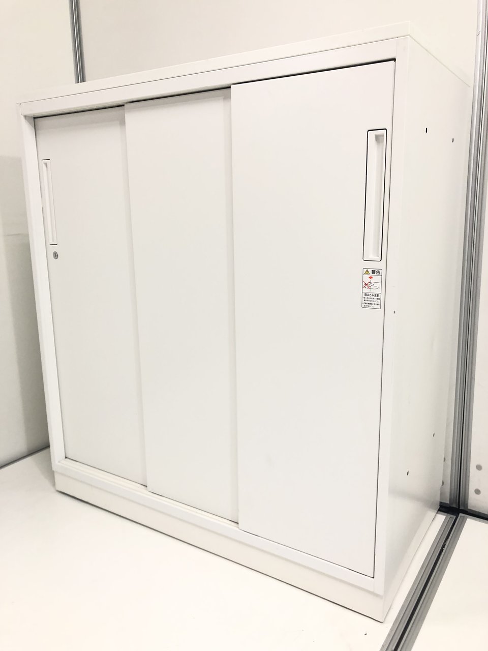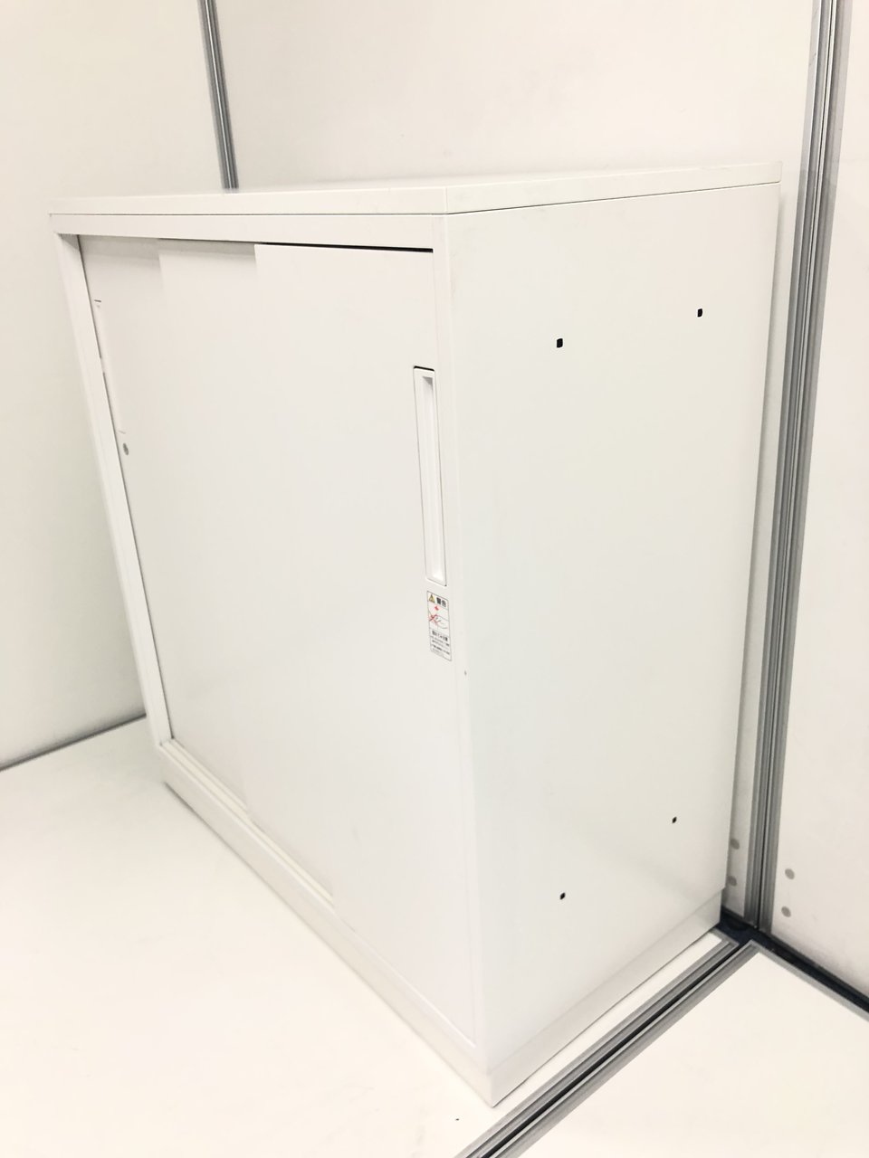 【スライド引き戸だから開閉スペースに困らない!】■コクヨ(KOKUYO)製 エディア(EDIA)シリーズ 2枚引き違い書庫 ローキャビネット シリンダー錠 天板付き ベース付き ホワイト シリンダー錠 収納 中古家具 格安 福岡 オフィス家具 九州最大級《オフィスバスターズ福岡博多店は、福岡を拠点として、日本全国へ中古オフィス用品・オフィス家具を提供しております》