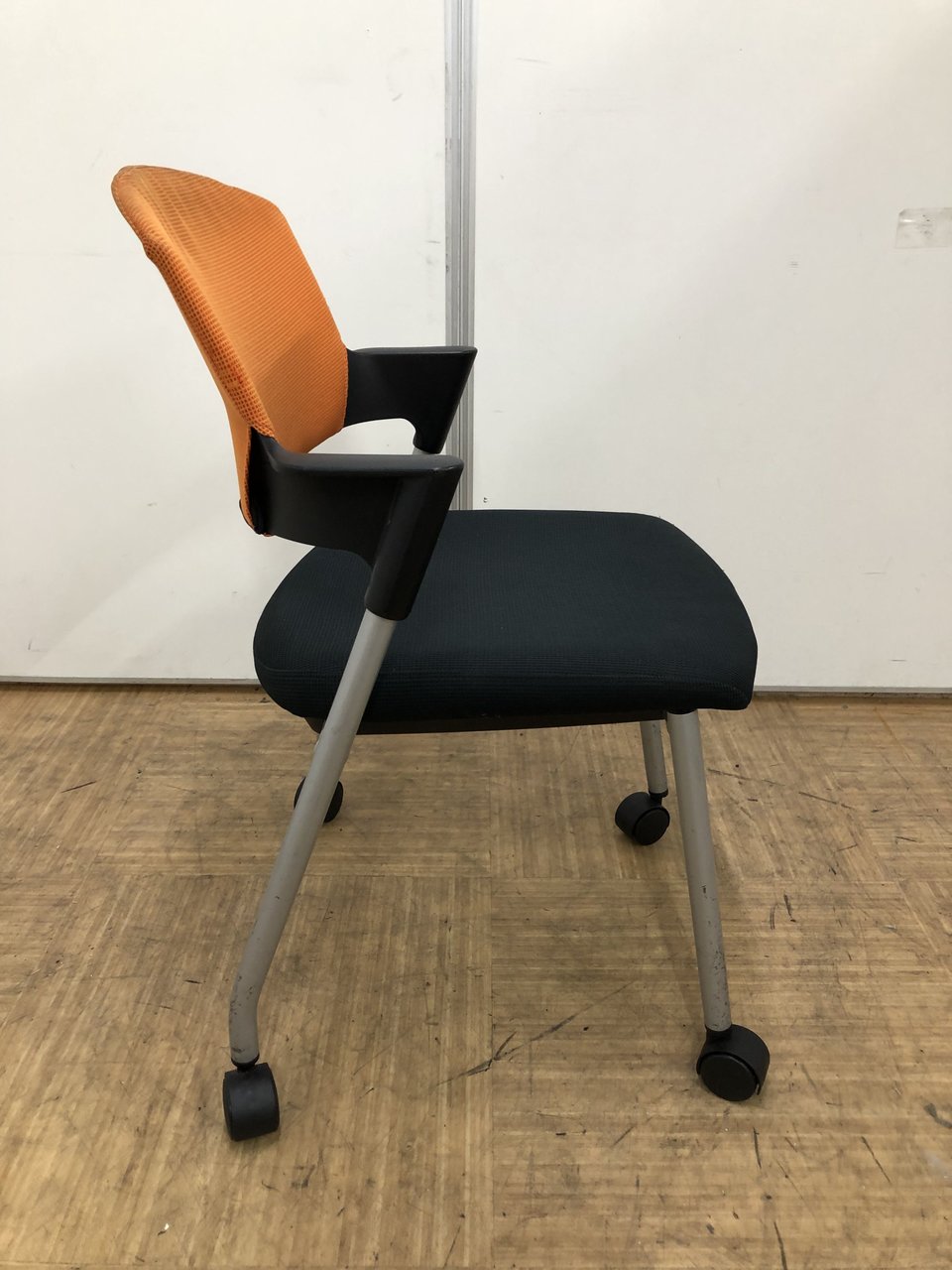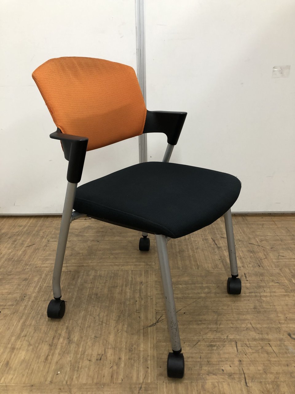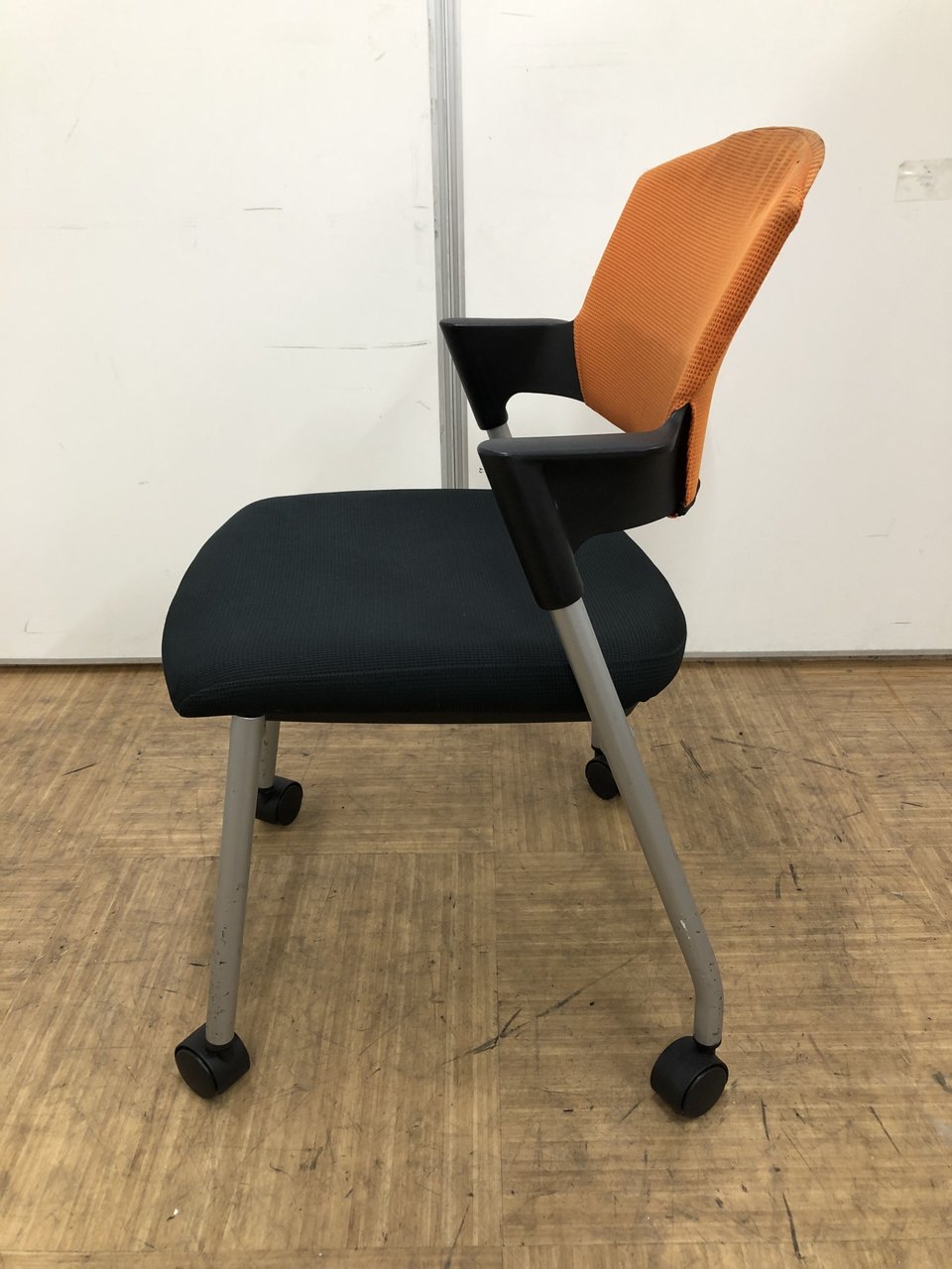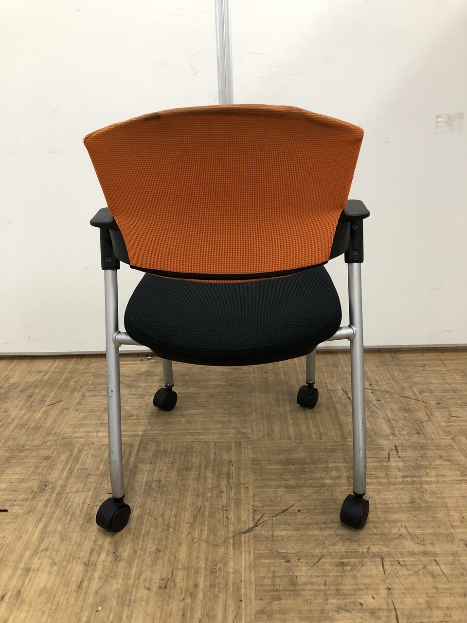【シンプルスマートなスタッキングチェア!】■コクヨ(KOKUYO) プロッティ(Protty)チェア スタッキングチェア ミーティングチェア ■肘付き キャスター付き ■オレンジ【2505】弊社使用欄【A01018053】