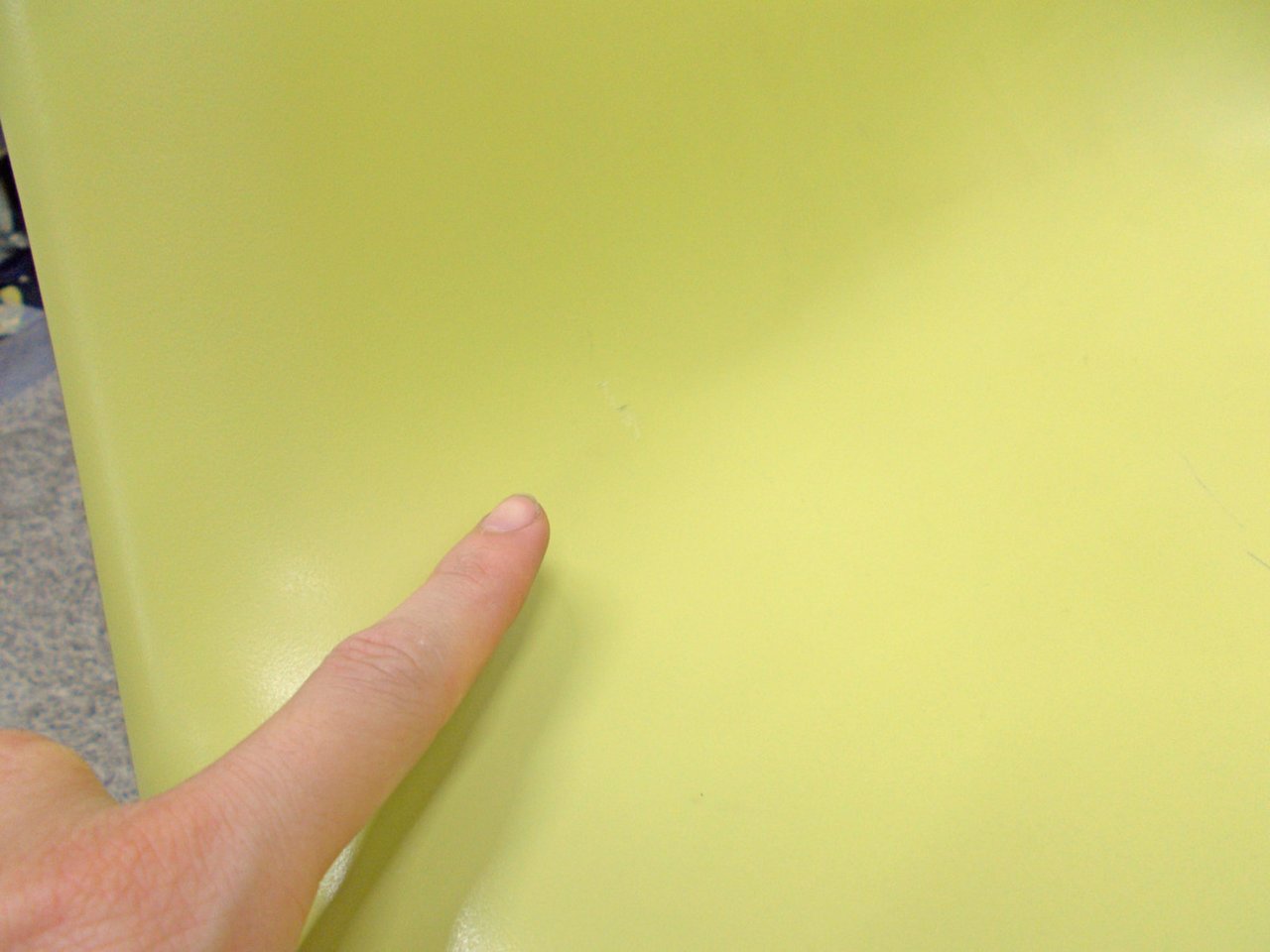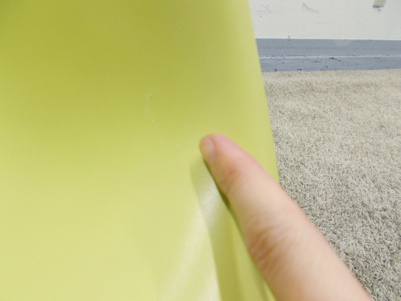 - かなり強い濃い黄ばみ・変色が商品全体にある。(例、座面・背もたれ、脚部等にある。)