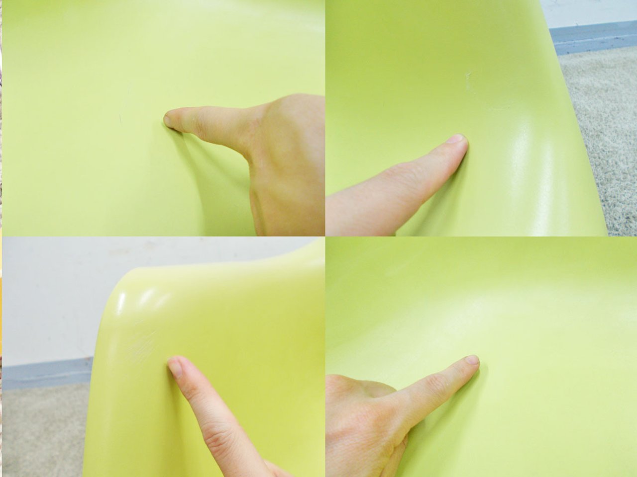 - 目立つ箇所あり傷・破れ・ほつれ・へたり・しわが多数または深い傷・破れ・ほつれ・へたり・しわが一部ある。※座面・背もたれ、シェル、脚部等にある。