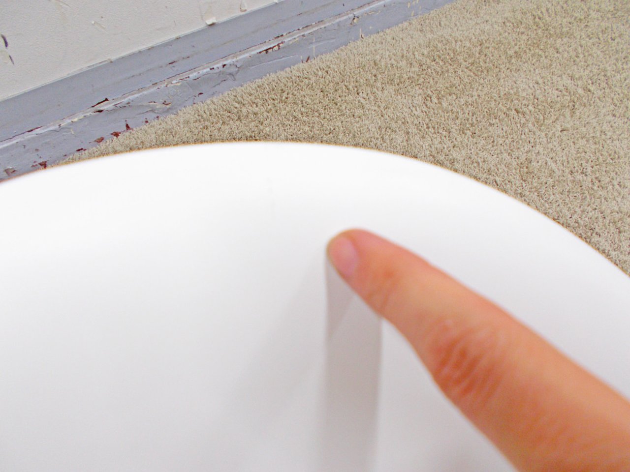 - かなり強い濃い黄ばみ・変色が商品全体にある。(例、座面・背もたれ、脚部等にある。)