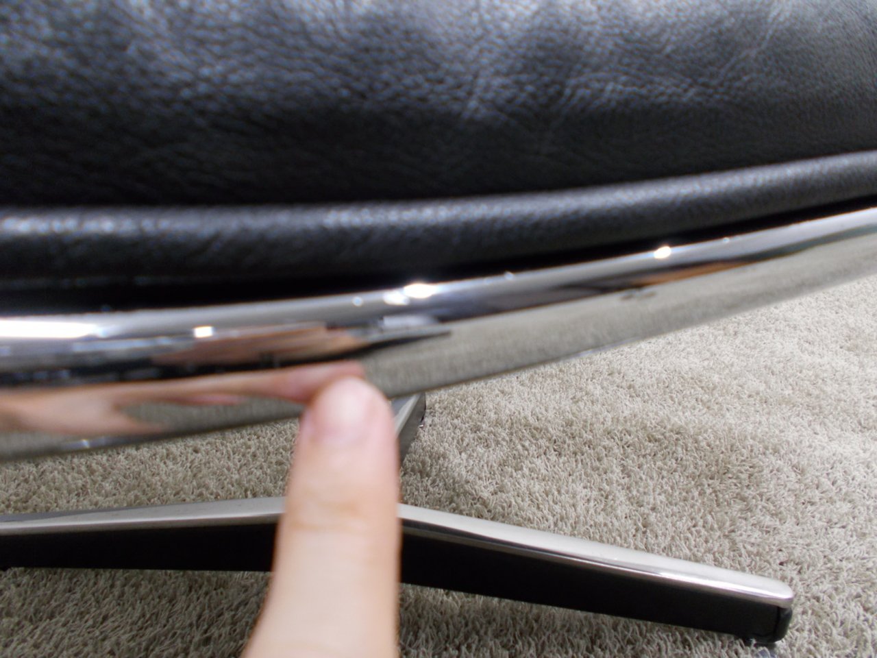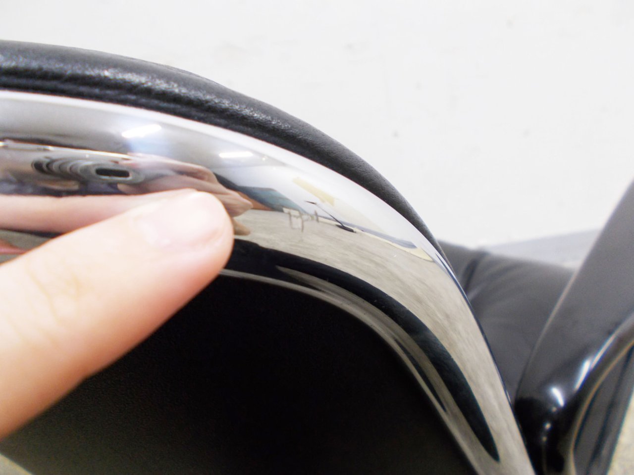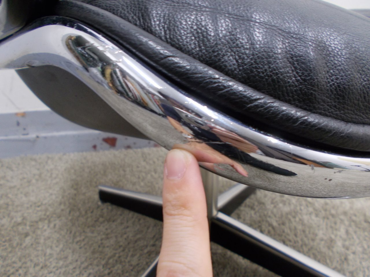 - かなり強い濃い黄ばみ・変色が商品全体にある。(例、座面・背もたれ、脚部等にある。)