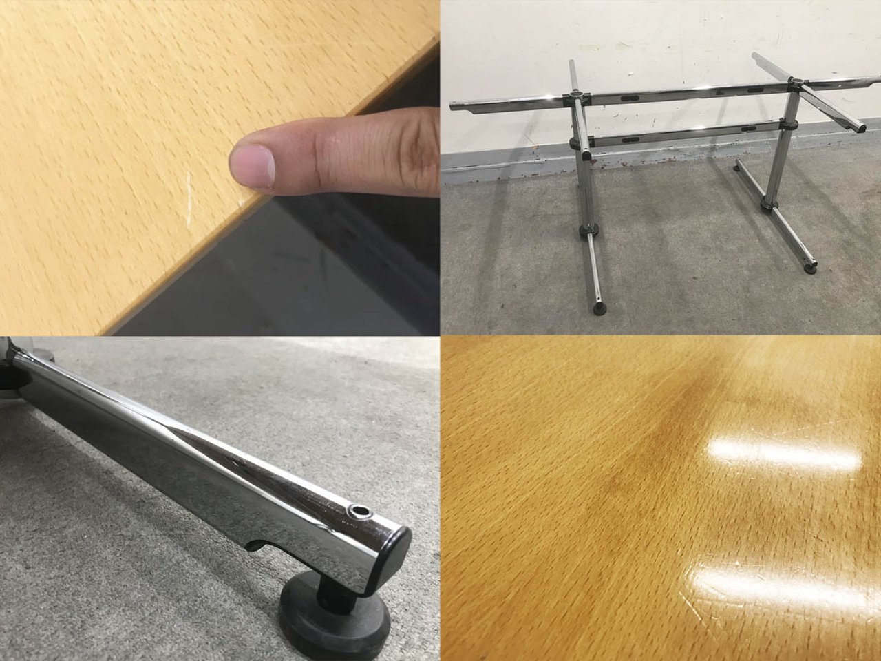 - 壊れている天板歪み、アジャスター無し、キャスター使用不可のようにそのテーブルの本来の効用を果たすための機能に不具合がある。