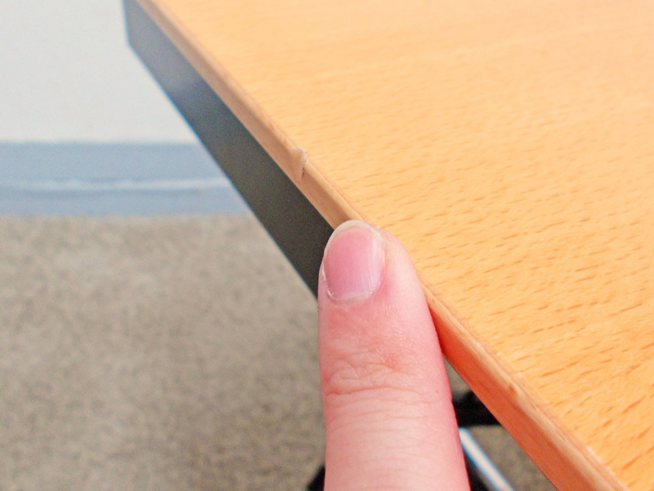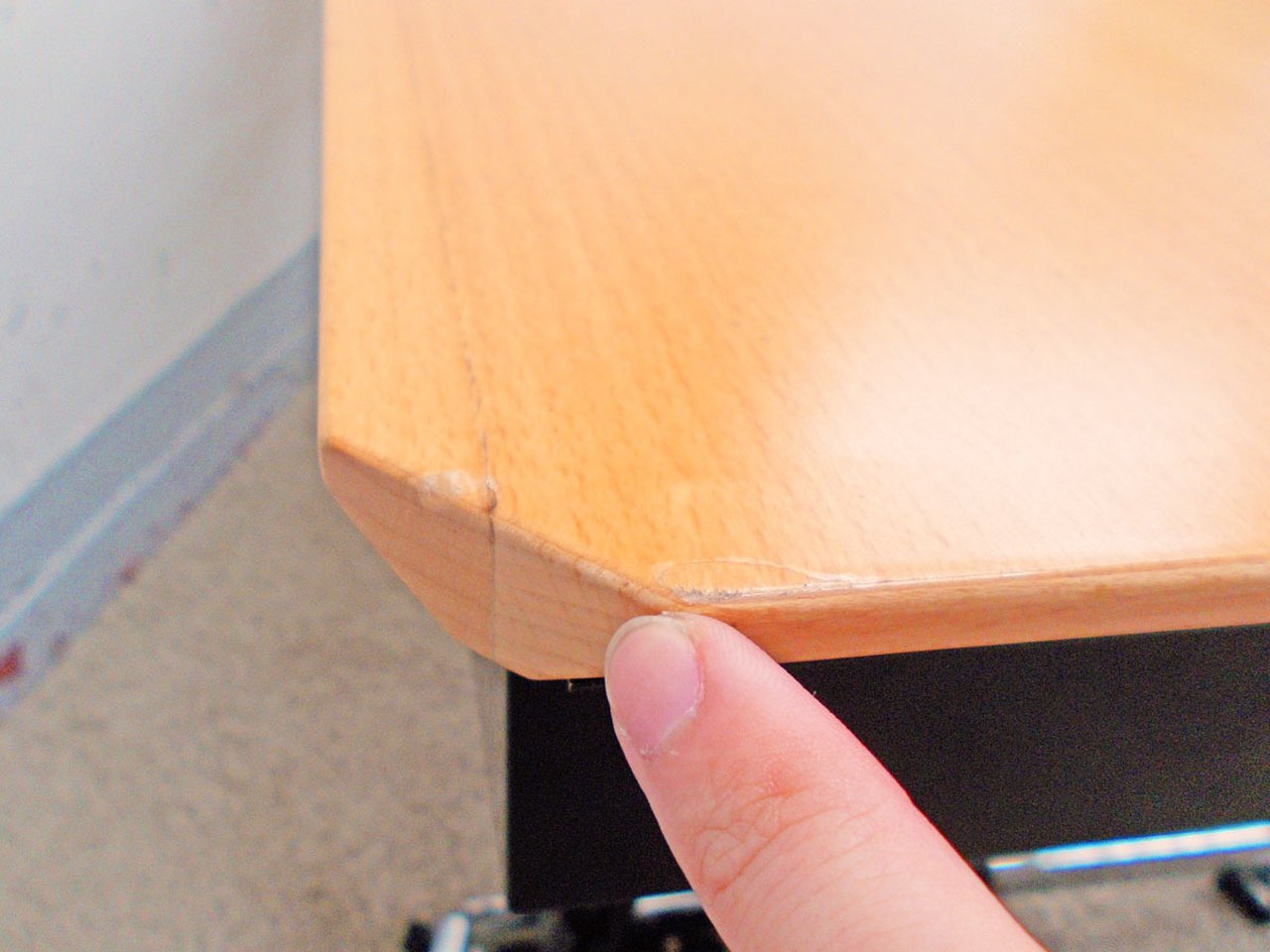 - 壊れている天板歪み、アジャスター無し、キャスター使用不可のようにそのテーブルの本来の効用を果たすための機能に不具合がある。