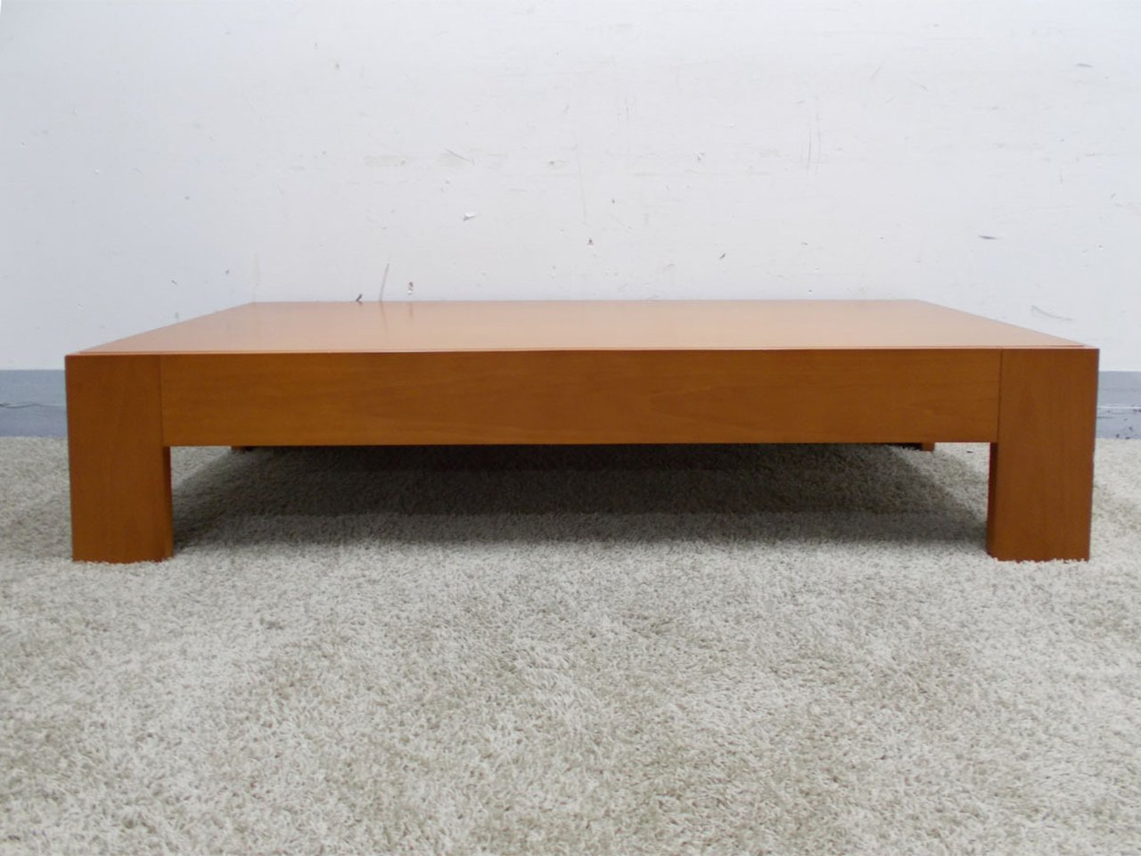 - かなり強い濃い黄ばみ・変色が商品全体にある。(例、天板、幕板、棚板、サイド部分、脚部等にある。)
