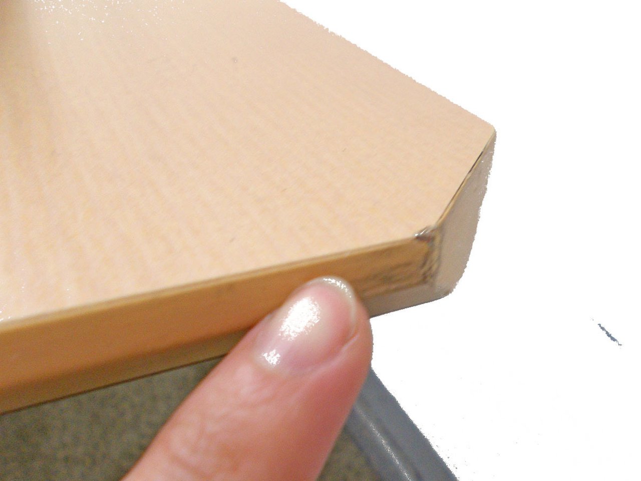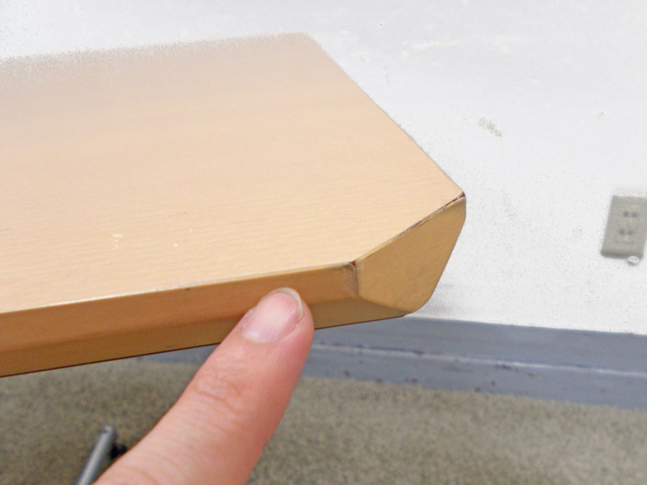 - あり黄ばみ・変色が広い範囲にうっすらある、または濃い黄ばみ・変色が一部ある。(例、天板、幕板、棚板、サイド部分、脚部等にある。)