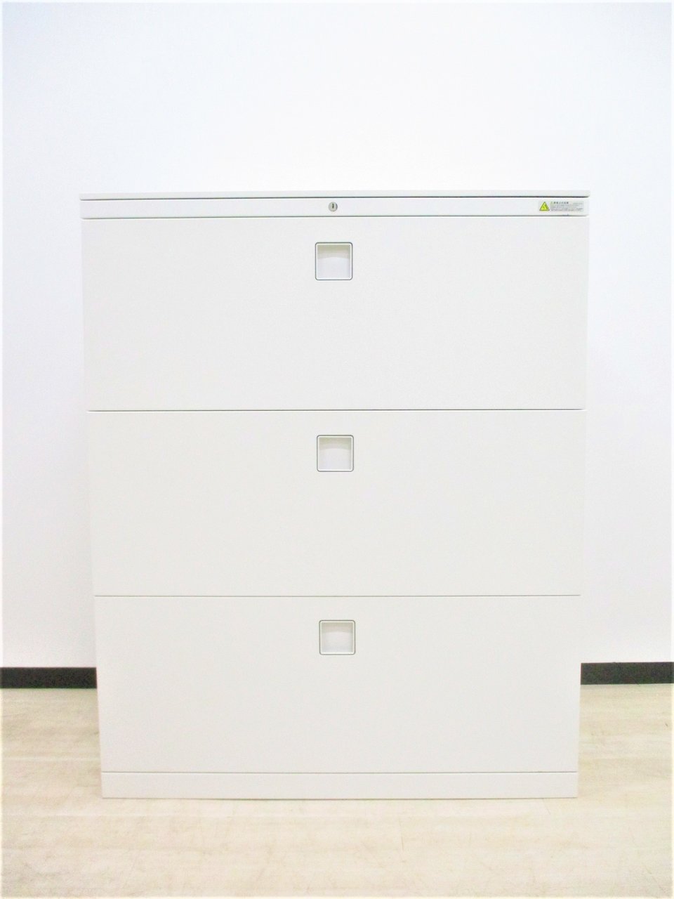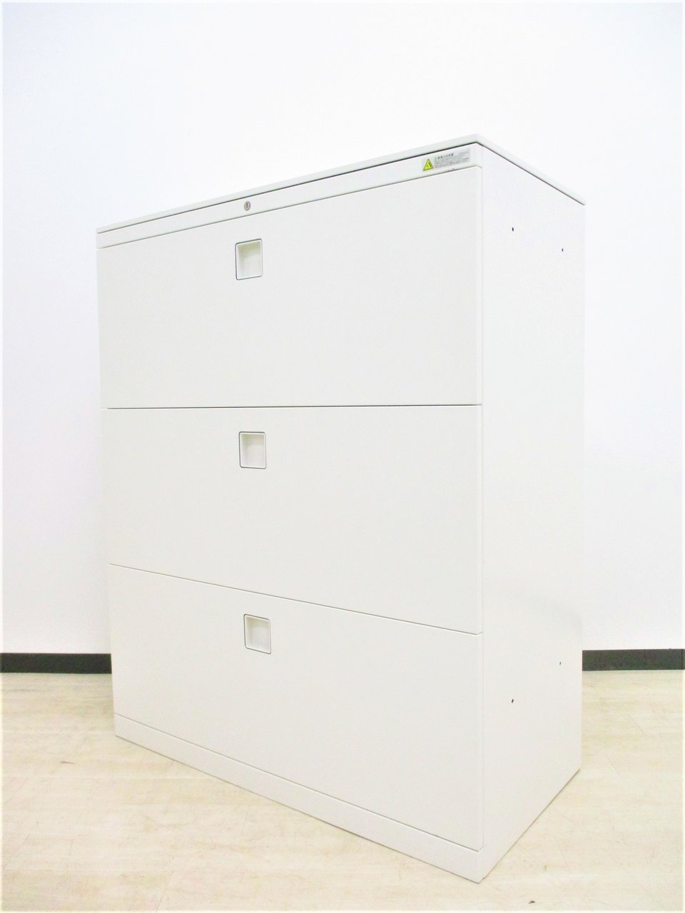 【ファイル収納にオススメ!高品質で使いやすい人気シリーズの3段ラテラル書庫!】■オカムラ(okamura)製 レクトラインシリーズ 3段ラテラル書庫 ローキャビネット H1100㎜ ■ホワイト ■シリンダー鍵 ■天板付き(天板:ホワイト) ※日焼け有