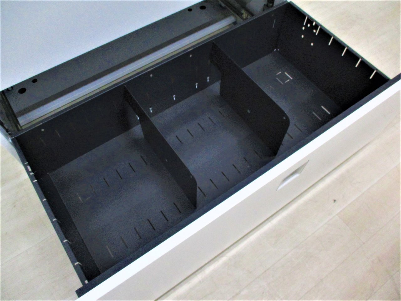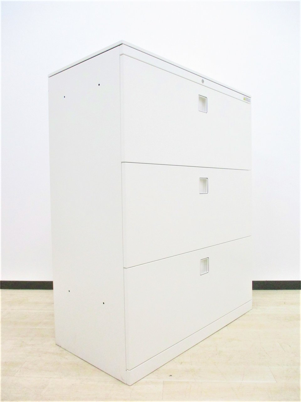 【オフィスの必需品!大容量の三段キャビネット!】■オカムラ(okamura)製 レクトラインシリーズ 3段ラテラル ローキャビネット ■天板/ベース付 ■シリンダー錠 ■ホワイト 【弊社使用欄:A01037187】