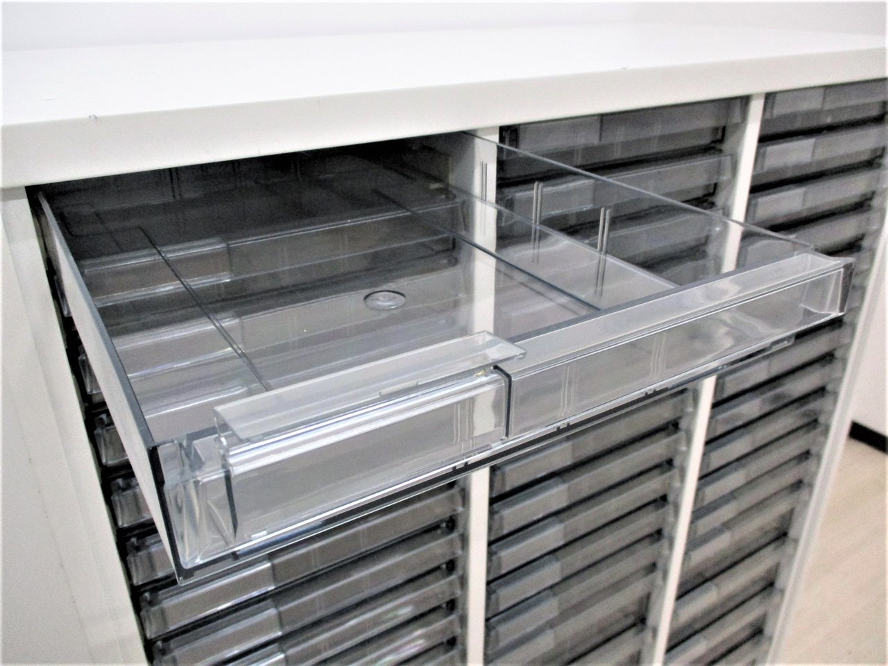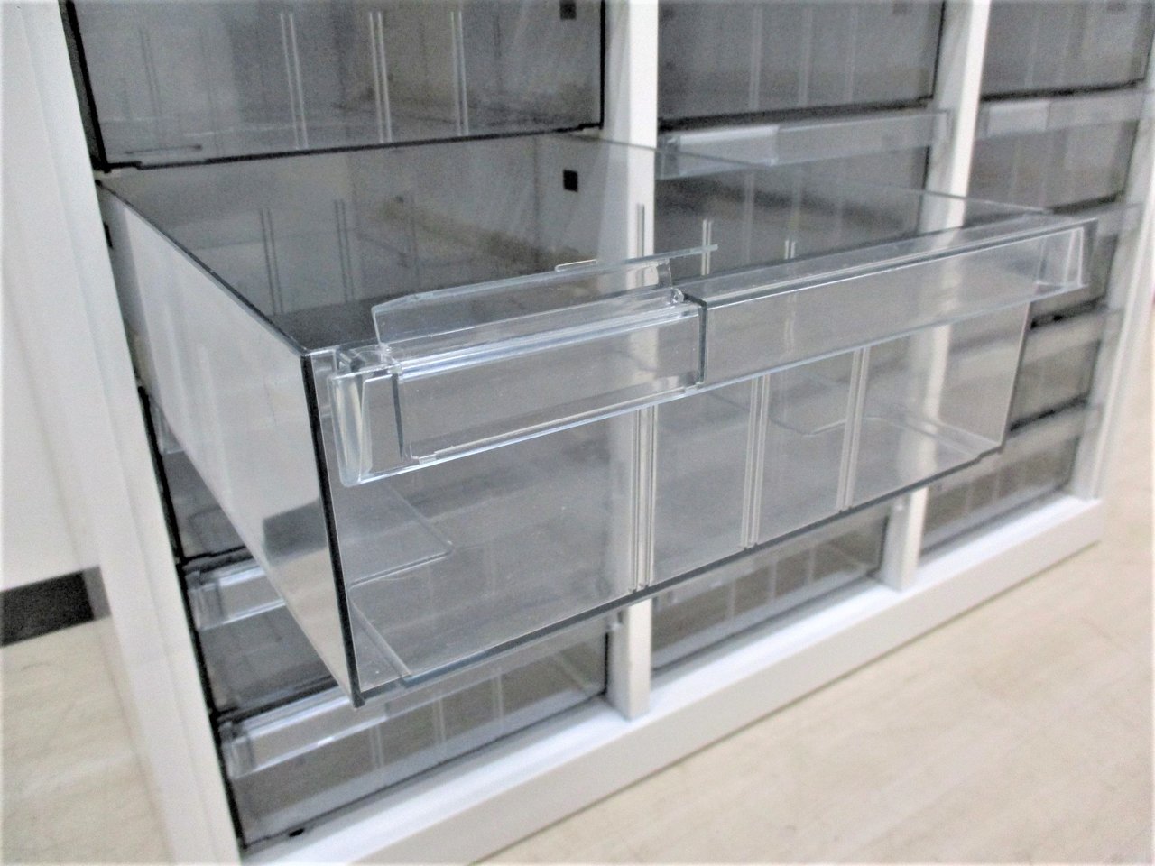 【書類・備品整理の必需品!書類や備品のストックにピッタリ!※1段目のみ浅型仕様】オカムラ レクトライン クリスタルトレー 書類 引き出し 透明 ケース ローキャビネット 整理 中古家具 オフィス家具 福岡 九州最大級《オフィスバスターズ福岡博多店は、福岡を拠点として、日本全国へ中古オフィス用品・オフィス家具を提供しております》