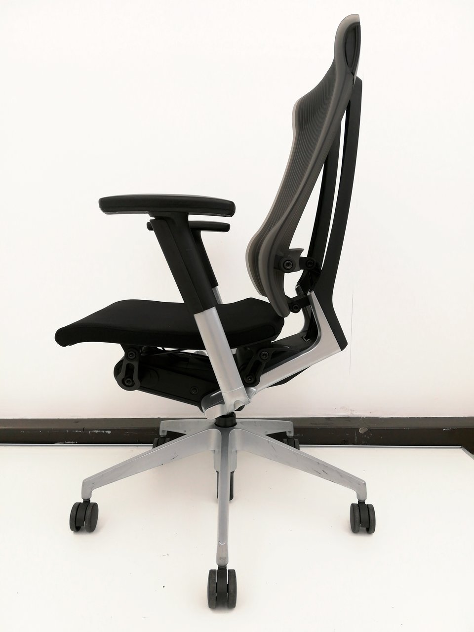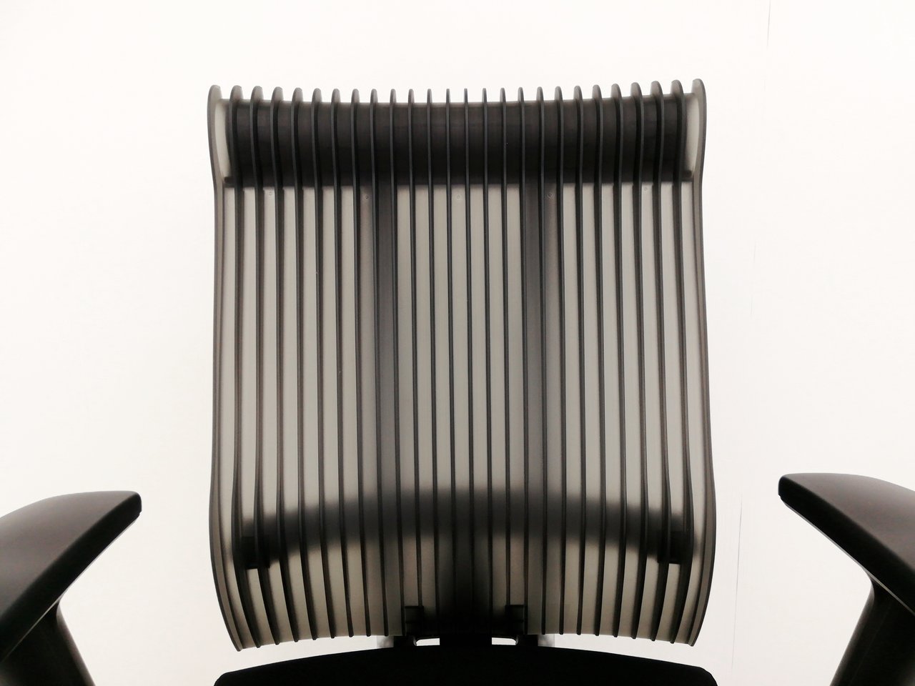 見た目は少し硬そうに見えるエラストマー素材ですが、座ってみると程よいしなり具合のやわらかな座り心地で、背中が痛くなるようなことはまるでありません。面ではなく線で支えることで、背面の通気性の良さは抜群です。