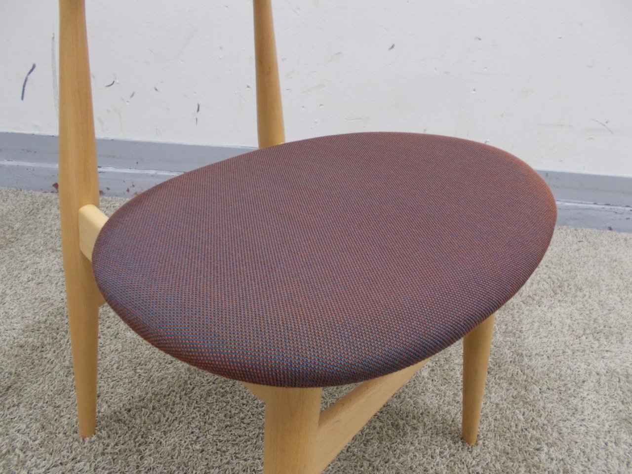 材質はビーチ材、座面クッション張りで、張地は角度により色味の変化が楽しめます