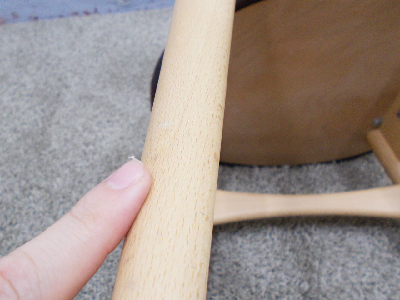 - あり黄ばみ・変色が広い範囲にうっすらある、または濃い黄ばみ・変色が一部ある。(例、座面・背もたれ、脚部等にある。)