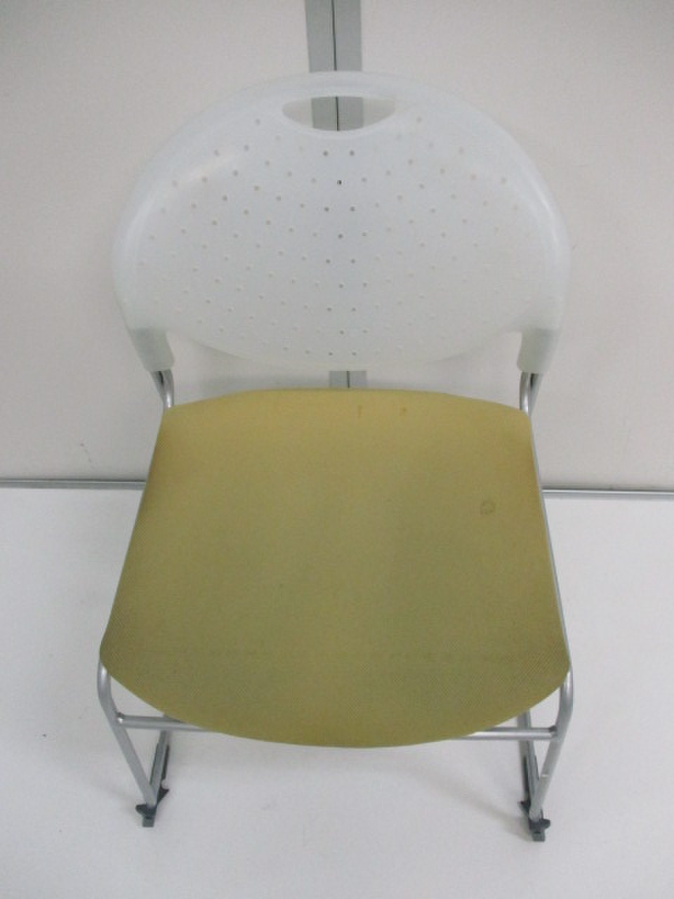 - かなり強い濃い黄ばみ・変色が商品全体にある。(例、座面・背もたれ、脚部等にある。)