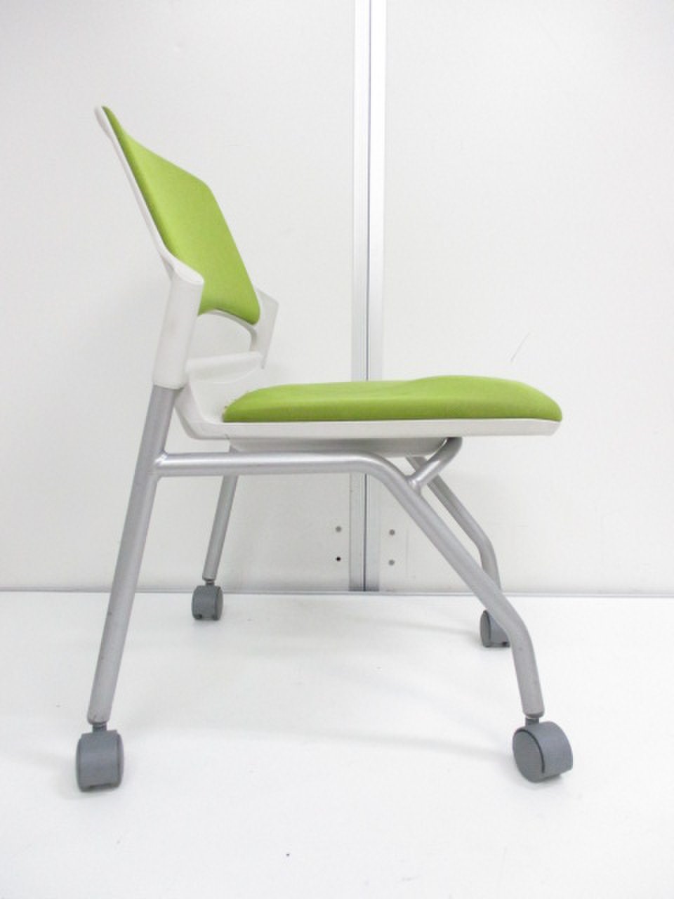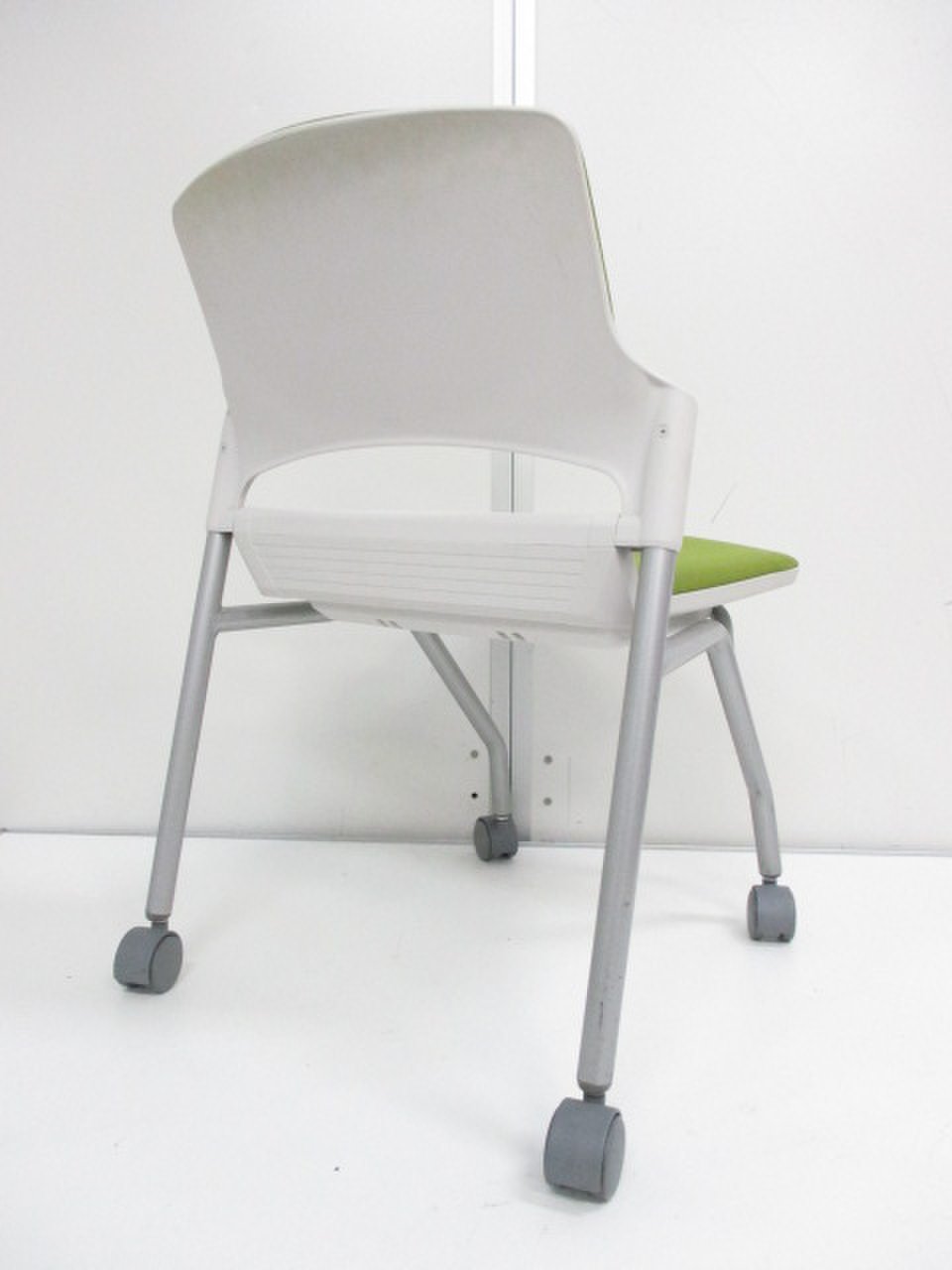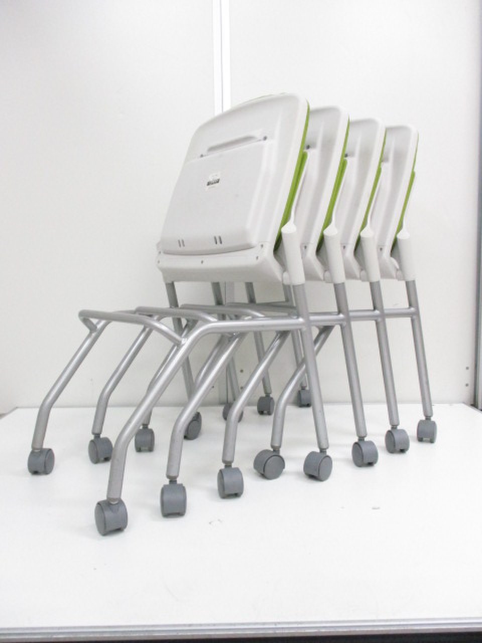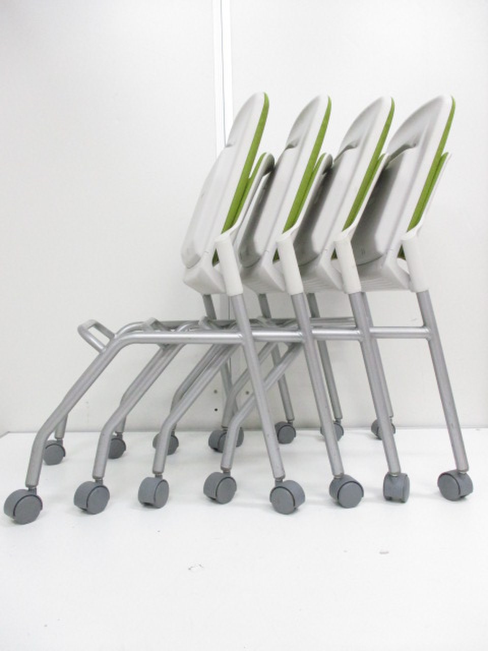 【4脚セットでお買い得】【会議室で使える】グリーンカラーのネスティングチェア- 在庫数