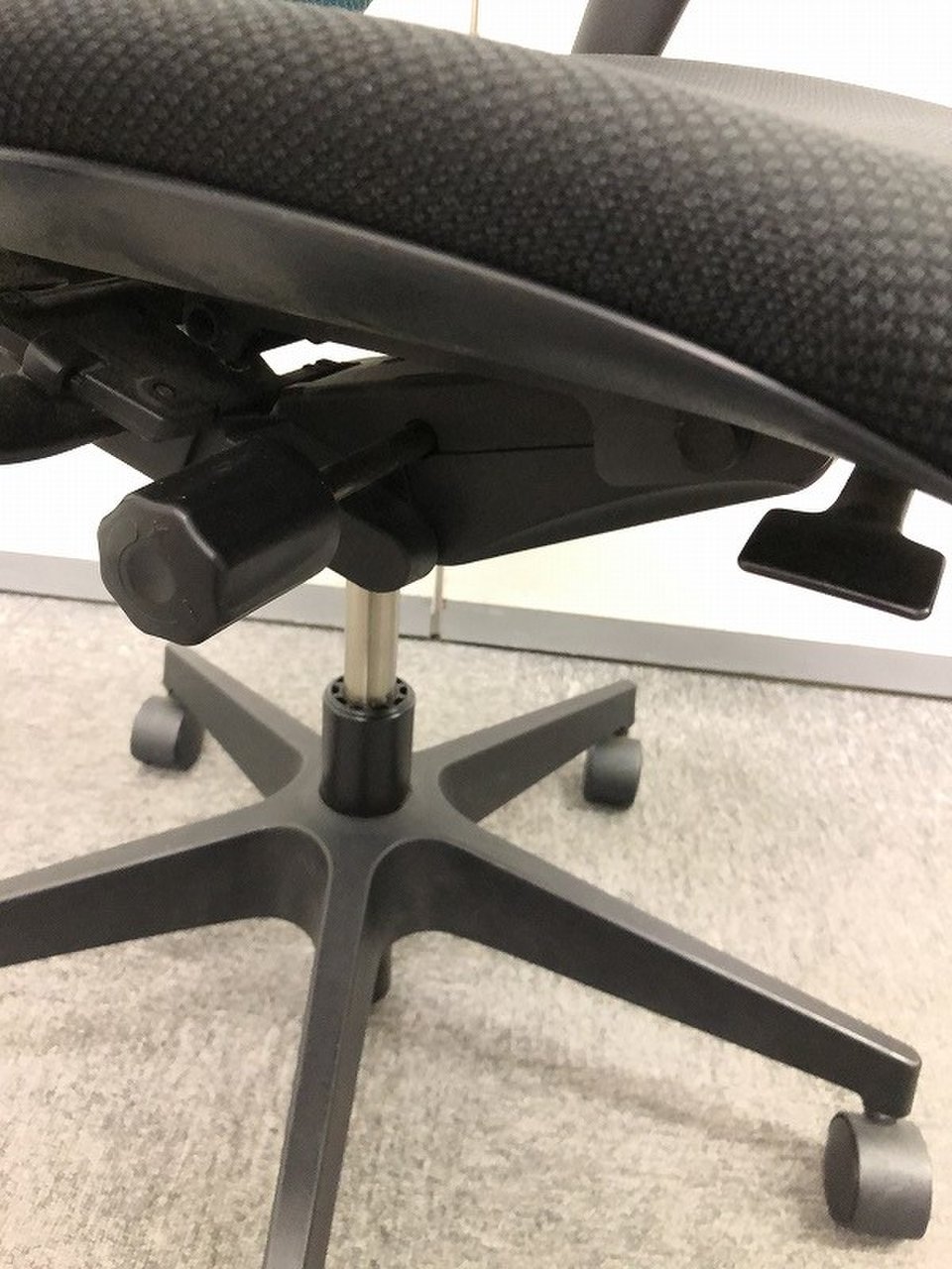 例えば、座面は、イトーキ独自の"ベンディングシート"という機構により、クッション、インターシェル、空洞という三層構造になっています。 この真ん中に挟まっているインナーシェルが、着座時の姿勢に合わせて体重を分散してくれるので、どんな姿勢でも体になじみ、疲労を軽減してくれます。 さらに、座面は前後に4センチほど奥行きを調整でき、前傾姿勢で座りたい、深く腰掛けたい、膝裏を圧迫されたくないなど、個人の好みに合った快適さにカスタマイズが可能となっています。